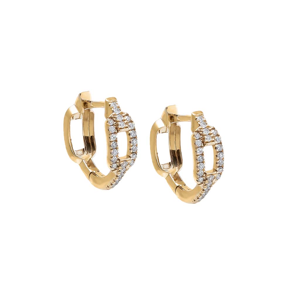 Diamond Rectangular Link Huggie Earring 14K