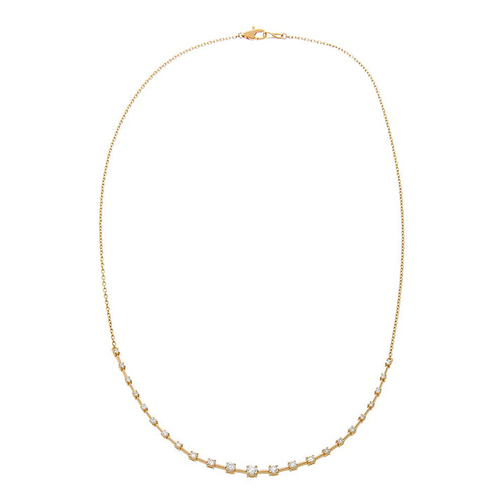 Diamond Scattered Stones X Bar Half Tennis Necklace 14K