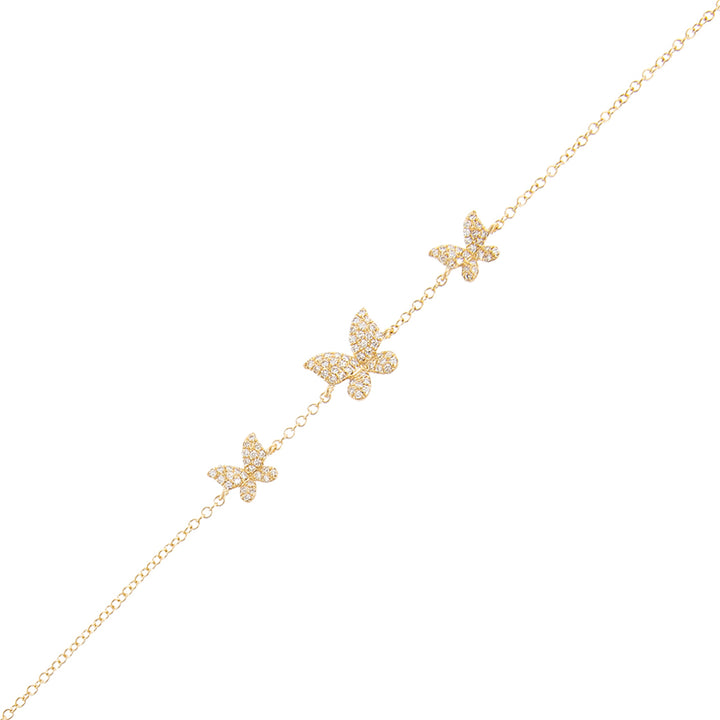 Diamond Triple Butterfly Bracelet 14K