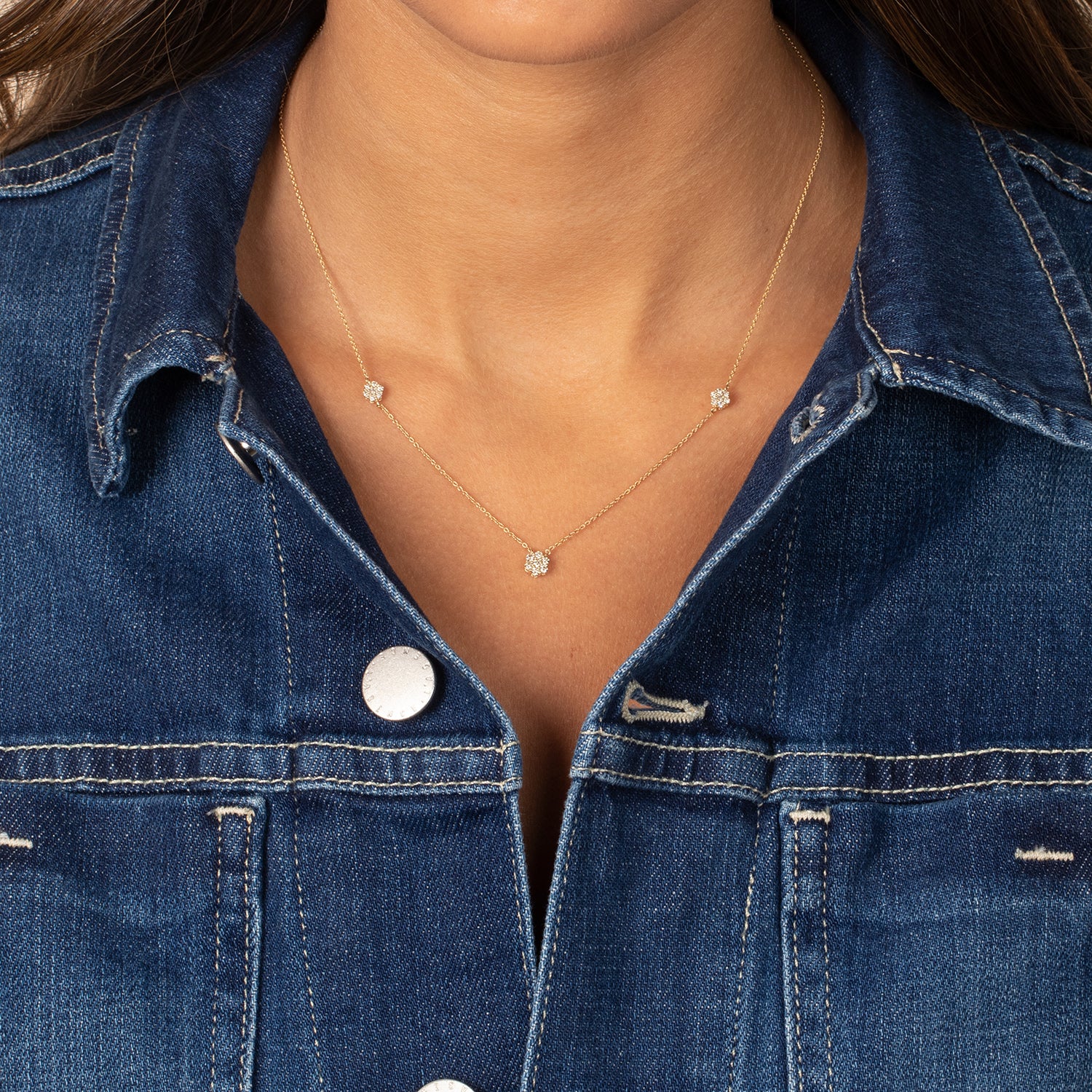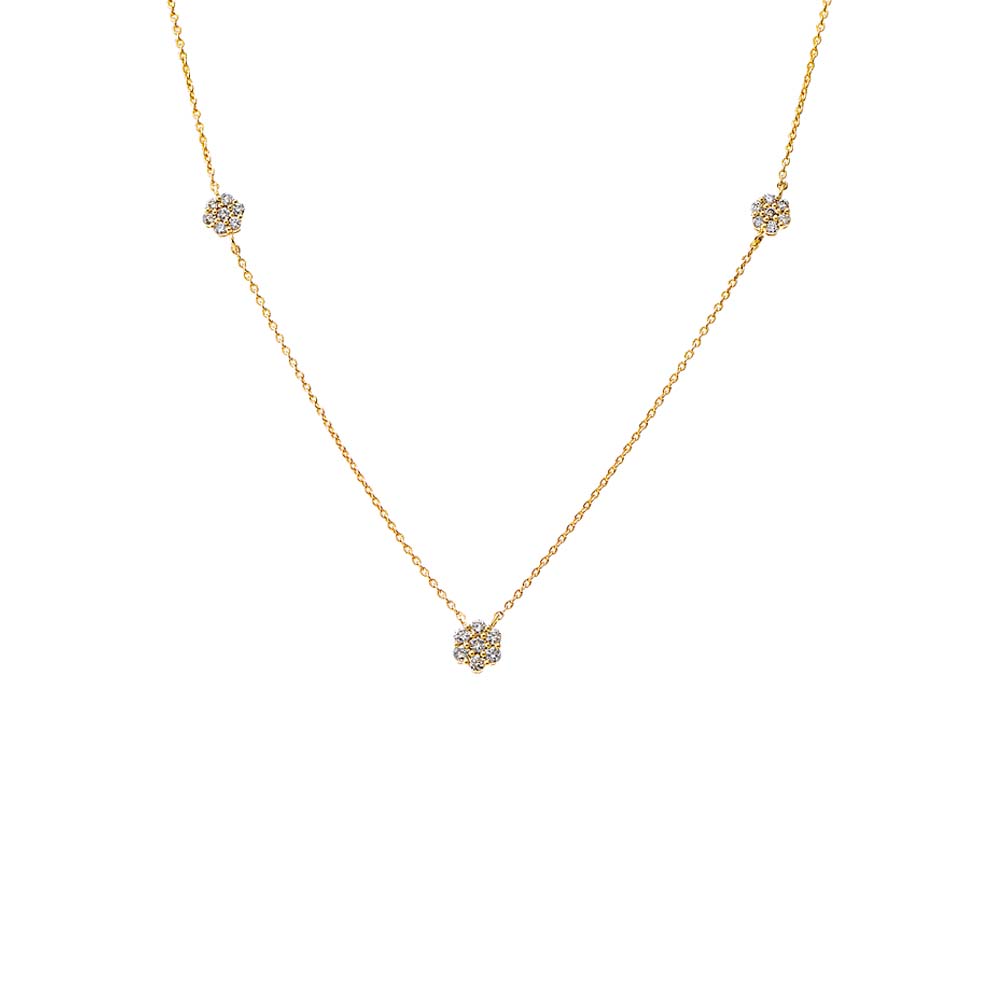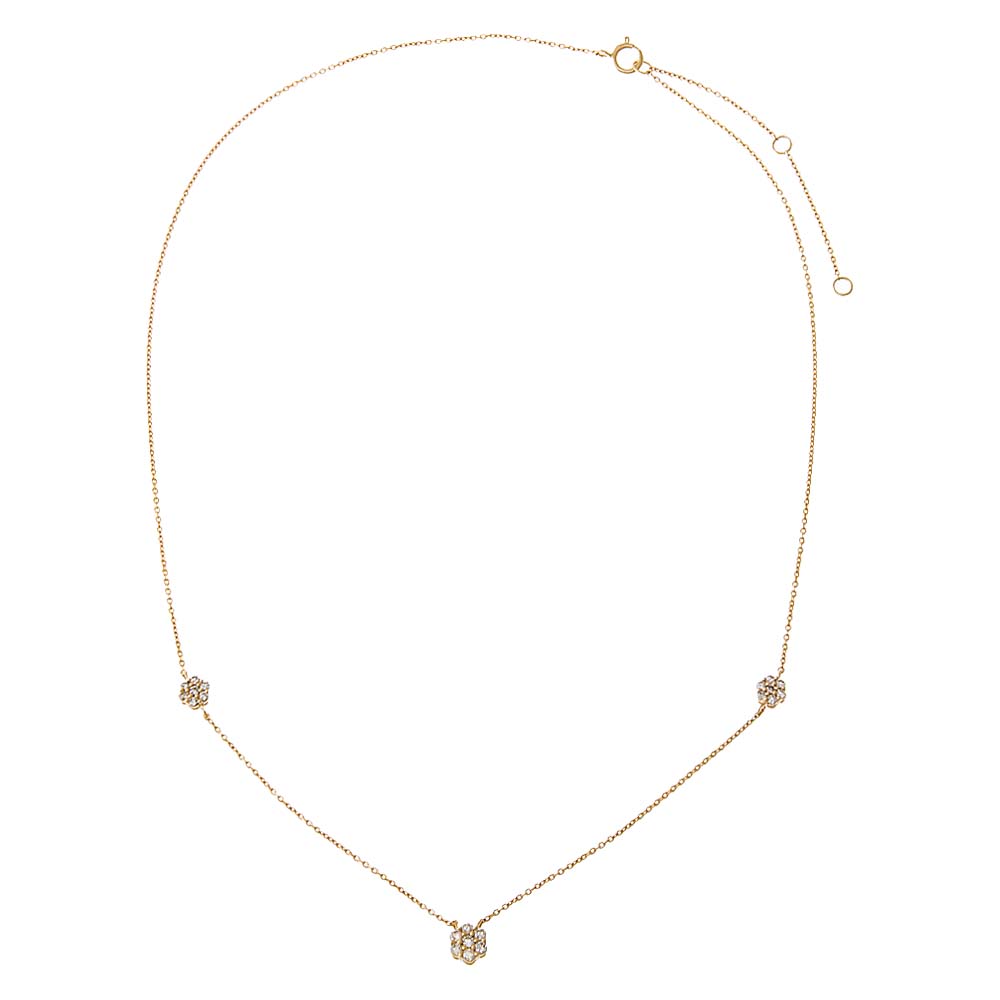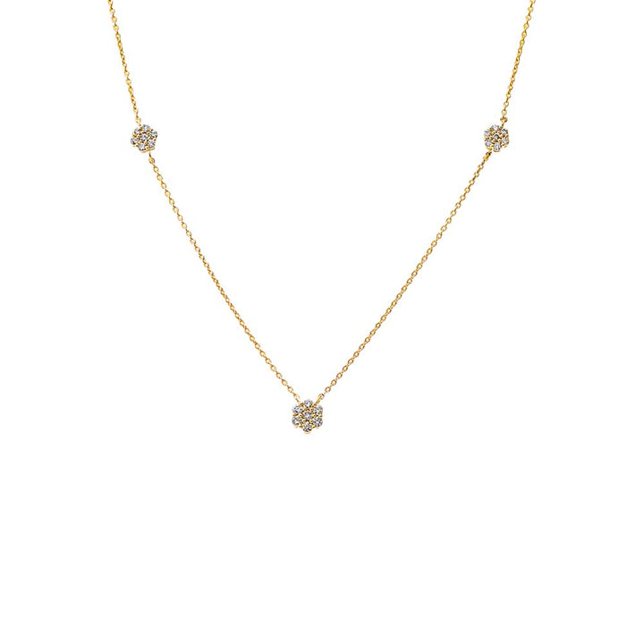 Diamond Triple Scattered Flower Necklace 14K