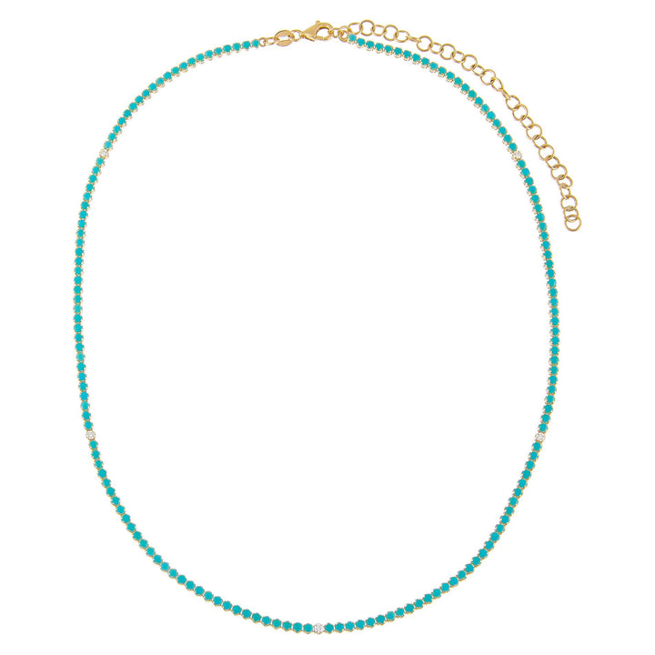 Diamond X Turquoise Tennis Necklace 14K