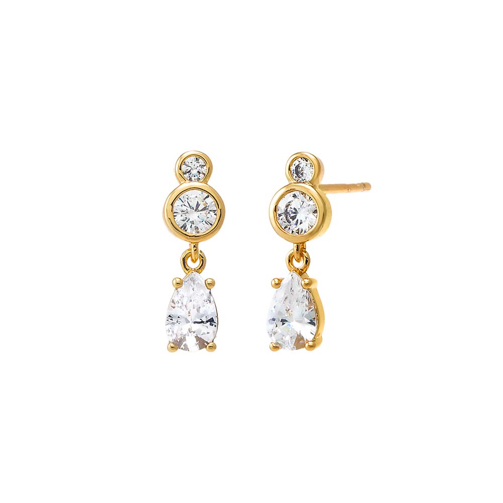 Double CZ Bezel X Teardrop Shaker Stud Earring