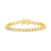 Flaunt a brilliant look anywhere with Adina Eden's Emerald Bezel-Set Tennis Bracelet, featuring a series of emerald-cut CZs set into a delicate tennis chain. Create your new go-to wrist stack when you rock this gem with a couple of classic chains and a bangle.
