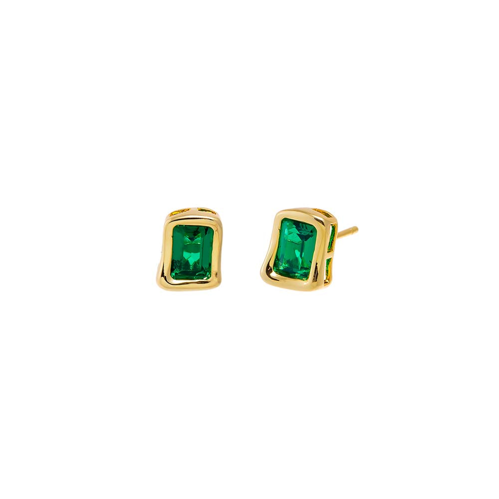 Emerald Green Curved Bezel CZ Stud Earring