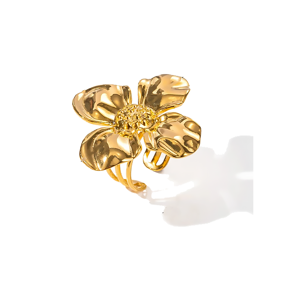 Introducing the Flower Statement Ring from Adina Eden, a captivating and elegant addition to your jewelry collection. Crafted from durable stainless steel and plated with luxurious 18K gold, this ring features a stunning flower design that measures 40 MM, making it a true statement piece. The adjustable size ensures a comfortable and versatile fit for any finger. Perfect for adding a touch of sophistication and charm to your ensemble, this flower statement ring is ideal for both everyday wear and special occasions.