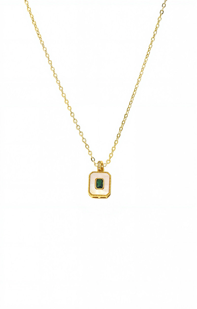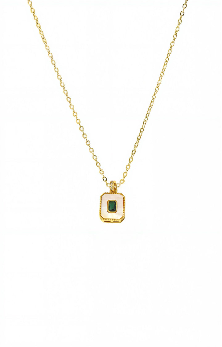 Green CZ & Mother Of Pearl Dog Tag Necklace