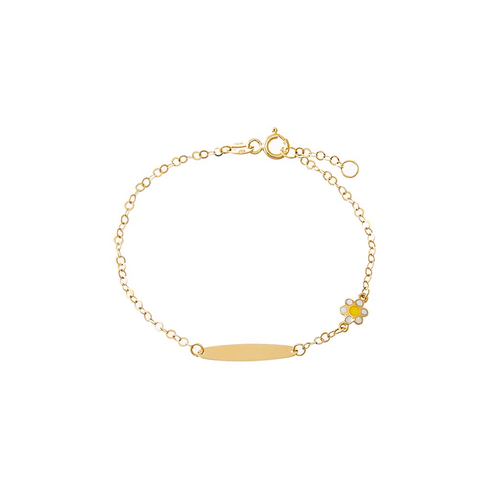 Adina Eden's Kids White Enamel Flower X ID Bracelet is a sweet and elegant piece, perfect for adding a touch of charm to her everyday look. Crafted in 14K gold, this bracelet features a 5mm flower charm in white and yellow enamel, beautifully complementing the classic ID bracelet style. With a length of 5.5 inches and a 0.25-inch extender, it provides a comfortable, adjustable fit as she grows. This lovely bracelet combines playful floral accents with timeless design, making it a versatile and cherished accessory in her jewelry collection.