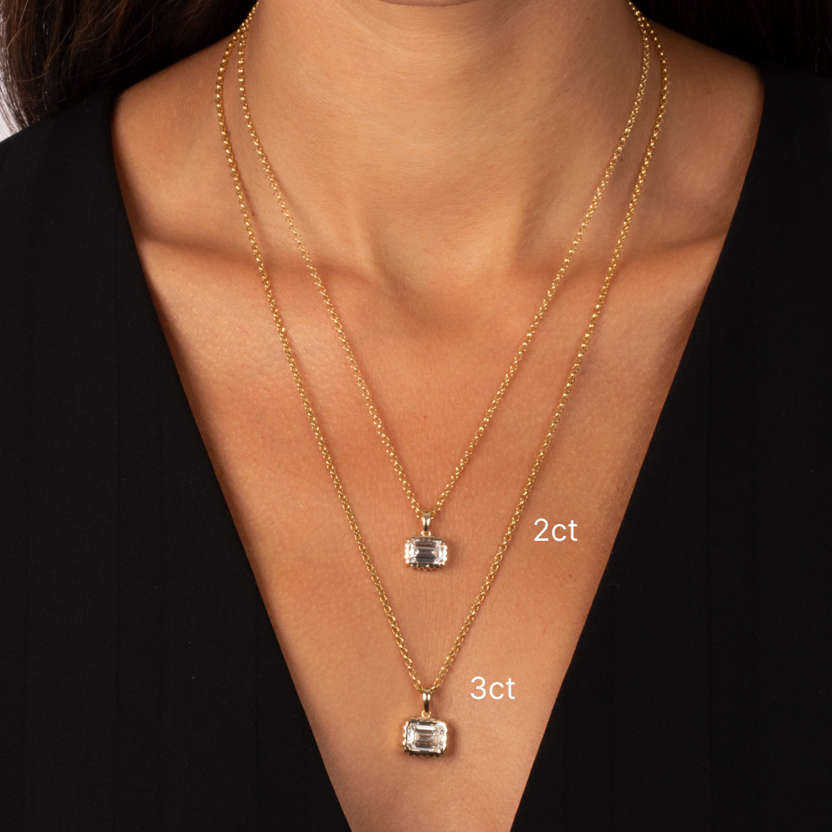 Lab Grown Diamond Bezel Emerald Pendant 14K