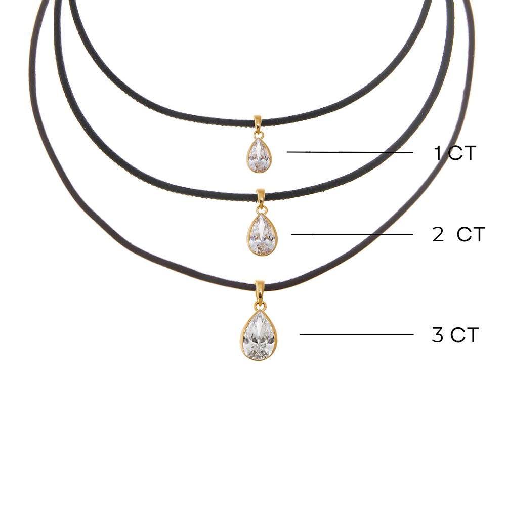 Lab Grown Diamond Pear Bezel Leather Chain Necklace 14K