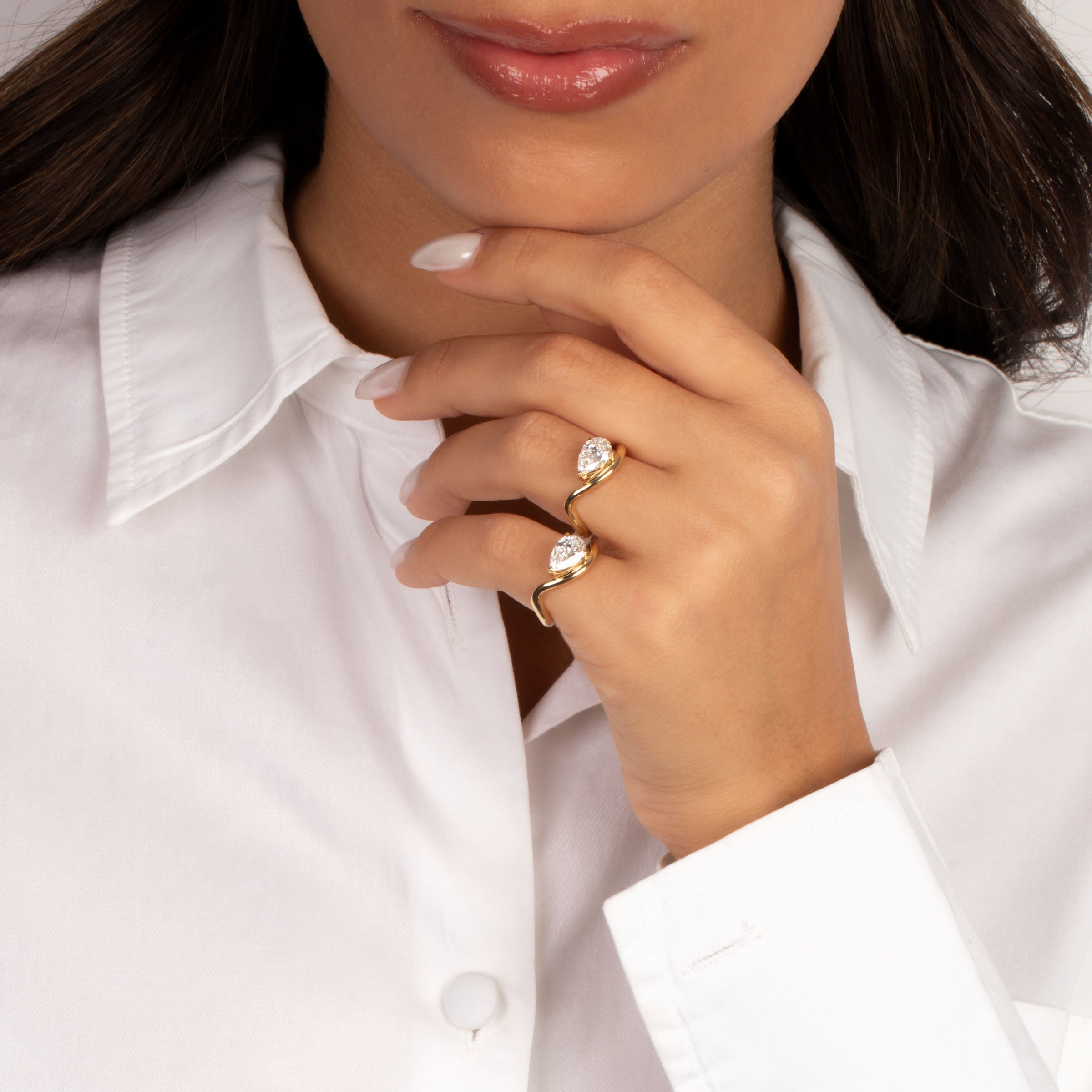 Lab Grown Diamond Pear Curved Pinky Ring 14K