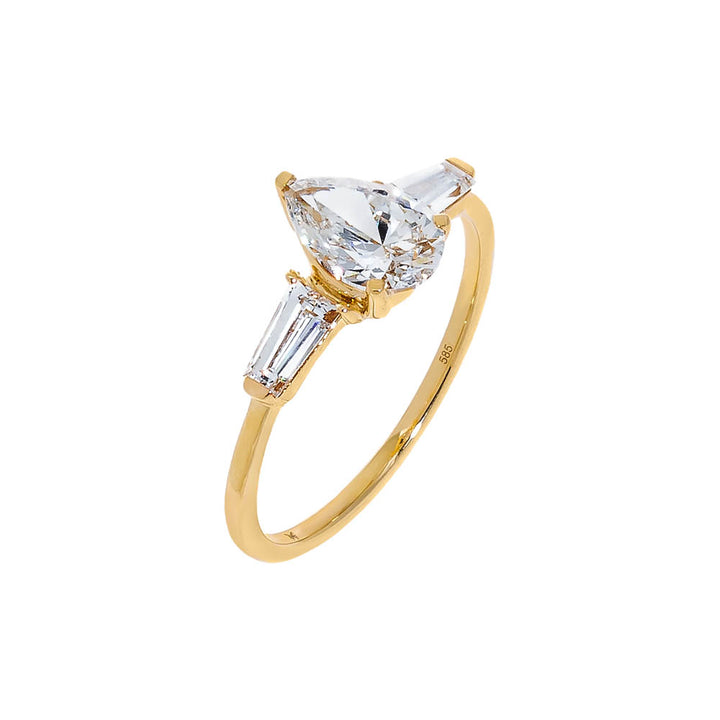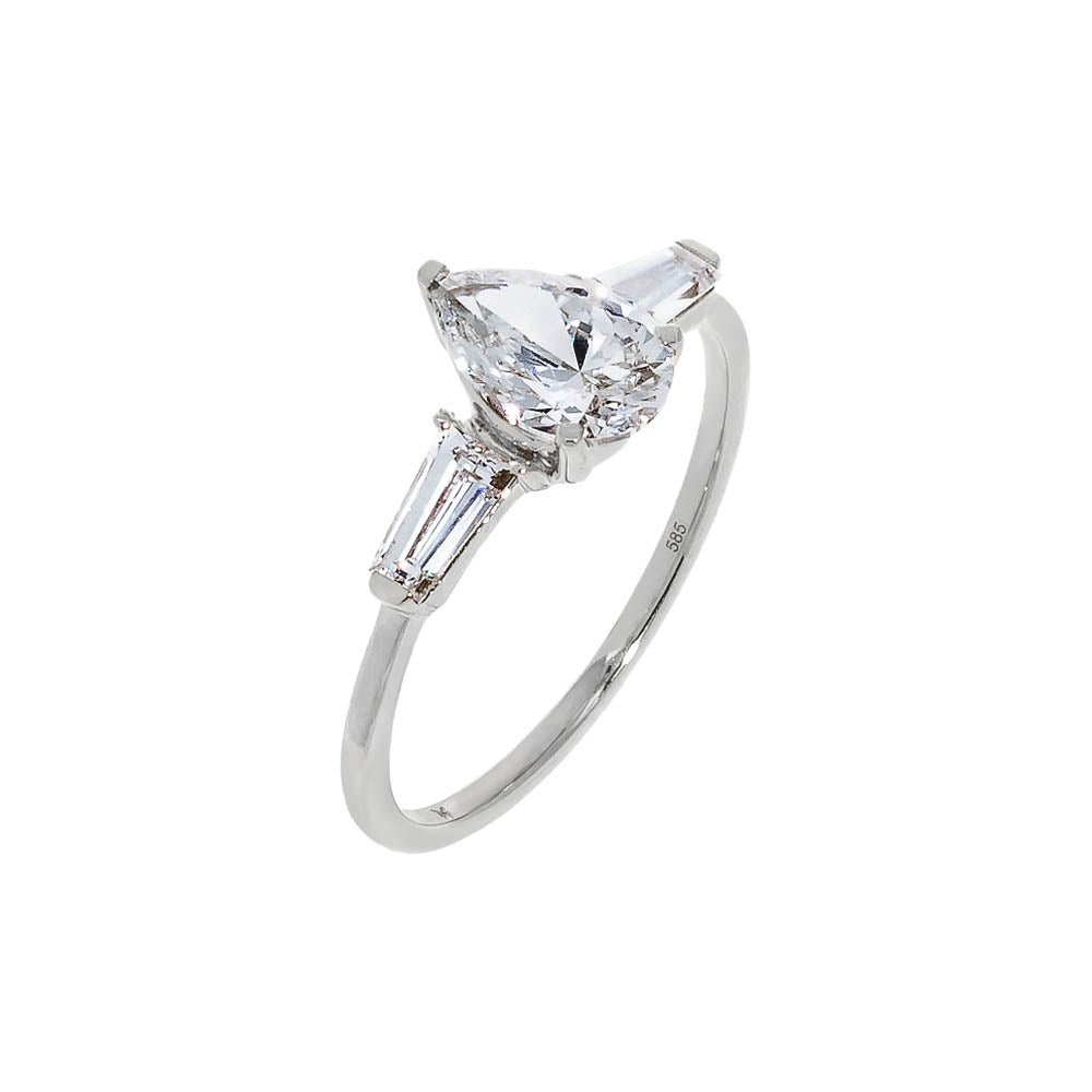Lab Grown Diamond Pear Cut Tapered Baguette Engagement Ring 14K