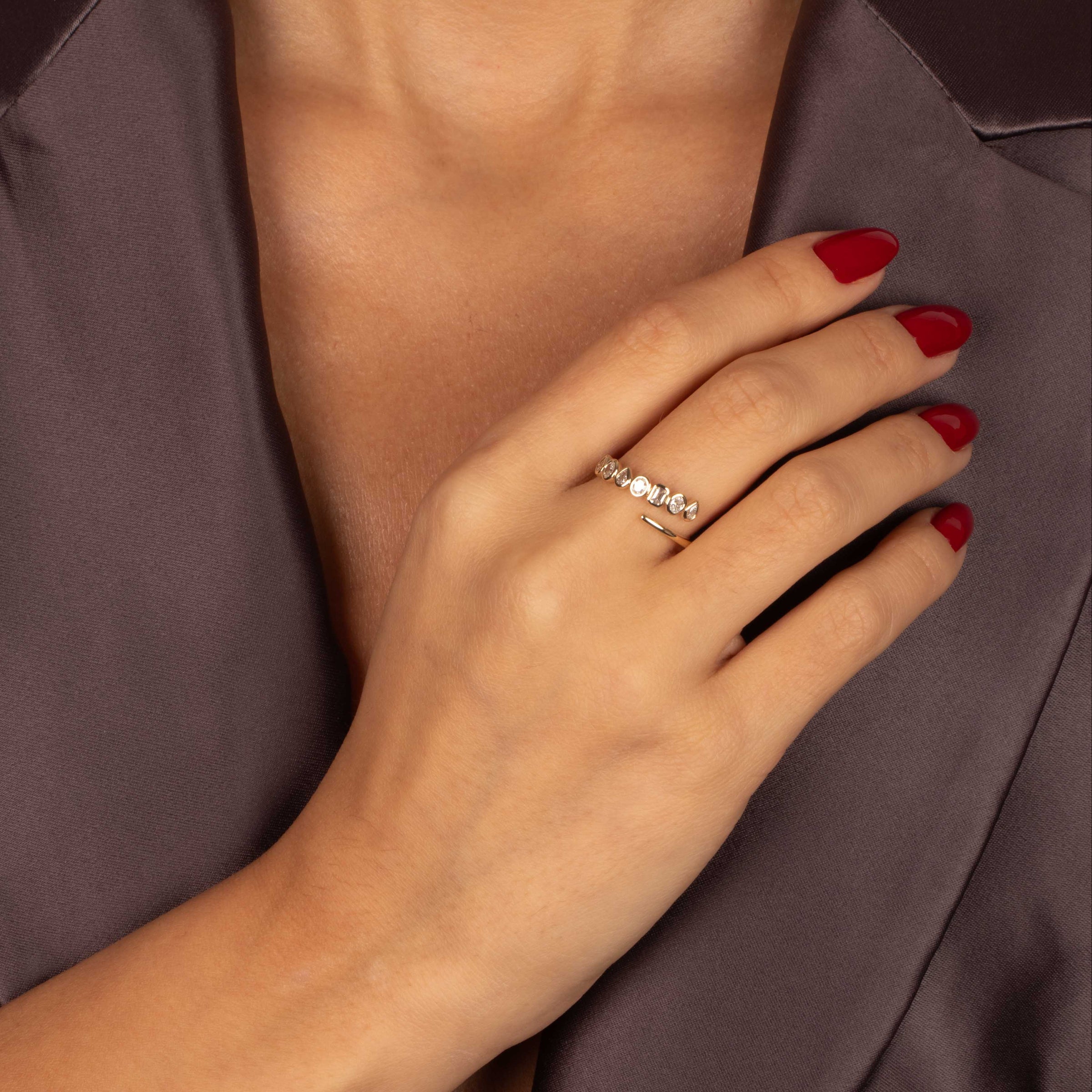 Lab Grownd Diamond Multishape Claw Wrap Ring 14K