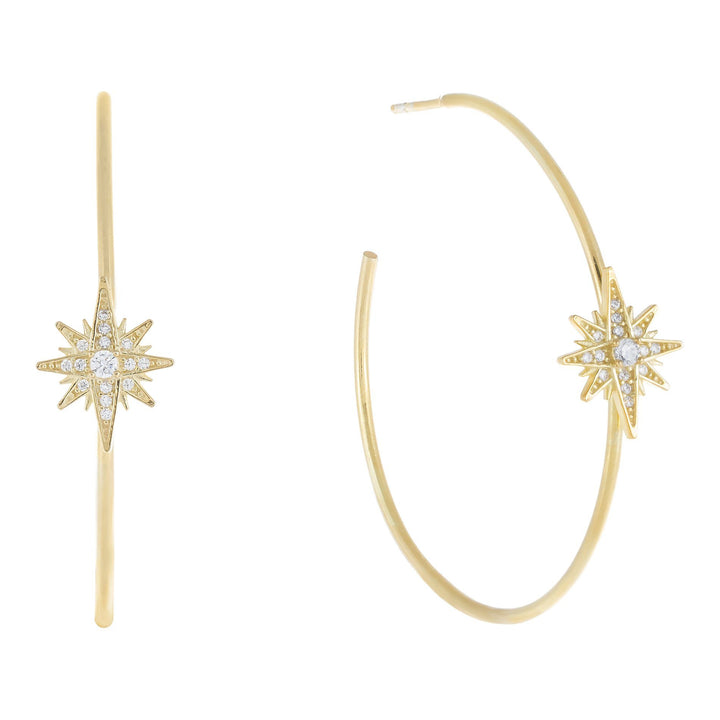 Large CZ Starburst Hoop Earring