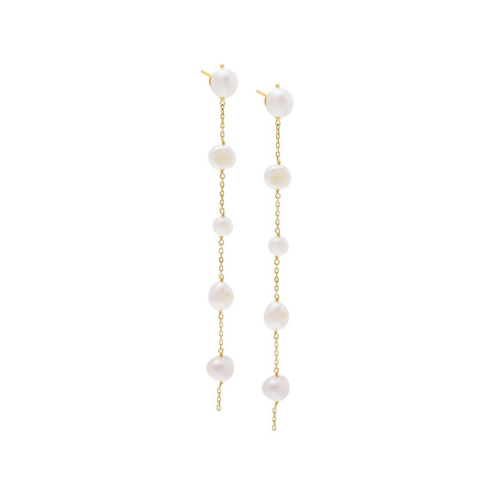 Make pearls fabulous again in Adina Eden's Pearl Chain Drop Stud Earring, featuring a drop chain stud adorned in lustrous pearls. Pair this gem with a couple of basic huggies, a cute ear cuff and a flowy midi dress for a carefree yet sophisticated vibe.