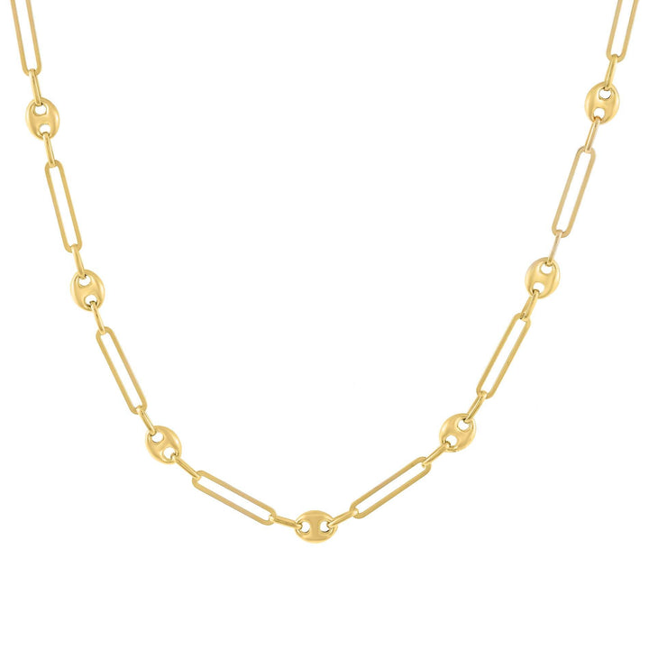 Discover a new sense of modern elegance in Adina Eden's Mariner Paperclip Necklace, featuring an alternating pattern of chic paperclip and Mariner links, expertly crafted in gold-plating. Chains are all the trend today and this beauty fits right into any brilliantly layered up chain collection you flaunt. Pair it with a deep v-neck dress and heels for a stunning, evening look.