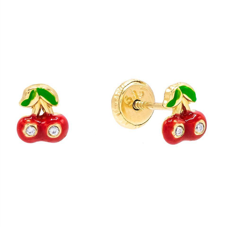 Take your pick with Adina Eden's cherry stud earrings, which are crafted in 14K gold and have a single CZ stone in the center. They're coated with a smooth enamel finish in red and green, designed to mimic a cherry. These adorable earrings will add a splash of charm to any look.