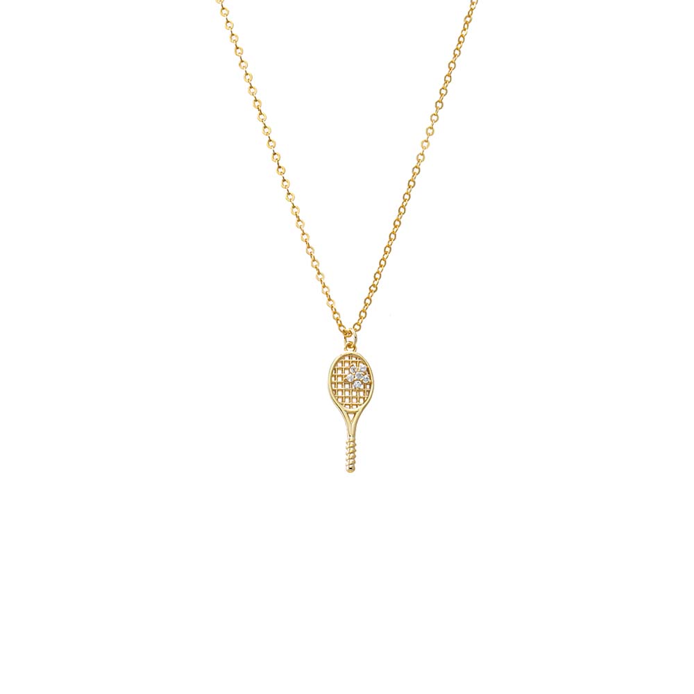 Mini CZ Flower Tennis Racket Pendant Necklace
