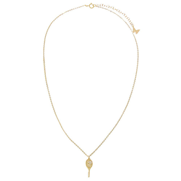 Adina Eden's Mini CZ Flower Tennis Racket Pendant Necklace is a playful and elegant piece, crafted from high-quality brass and plated in 14K gold. The necklace features a charming 19mm tennis racket pendant adorned with sparkling clear CZ stones arranged in a delicate flower pattern, adding a whimsical touch to the design. With an adjustable length of 16" plus a 2" extender, this necklace is perfect for layering or wearing alone as a fun statement piece. It’s the ideal accessory for tennis enthusiasts or anyone looking to add a unique and sophisticated flair to their jewelry collection.