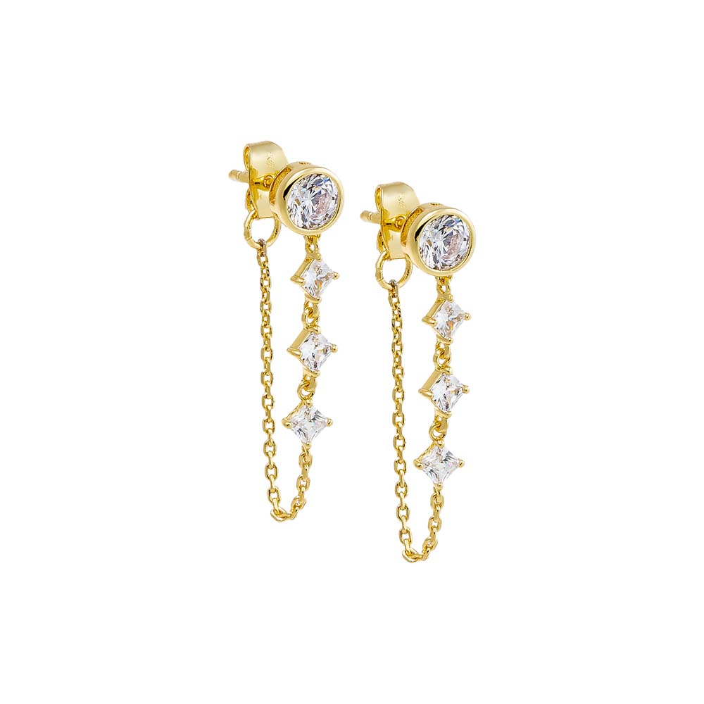 Add a touch of modern elegance with Adina Eden’s multi CZ front back drop chain stud earrings. Crafted from high-quality brass with a luxurious 14K gold plating, these chic earrings feature a 6mm bezel-set clear CZ stone that delicately connects to a 1-inch drop chain for a sleek, sophisticated look. Designed to be worn in a front-back style, they offer effortless movement and shine, making them perfect for both everyday wear and special occasions. A must-have addition to any jewelry collection.