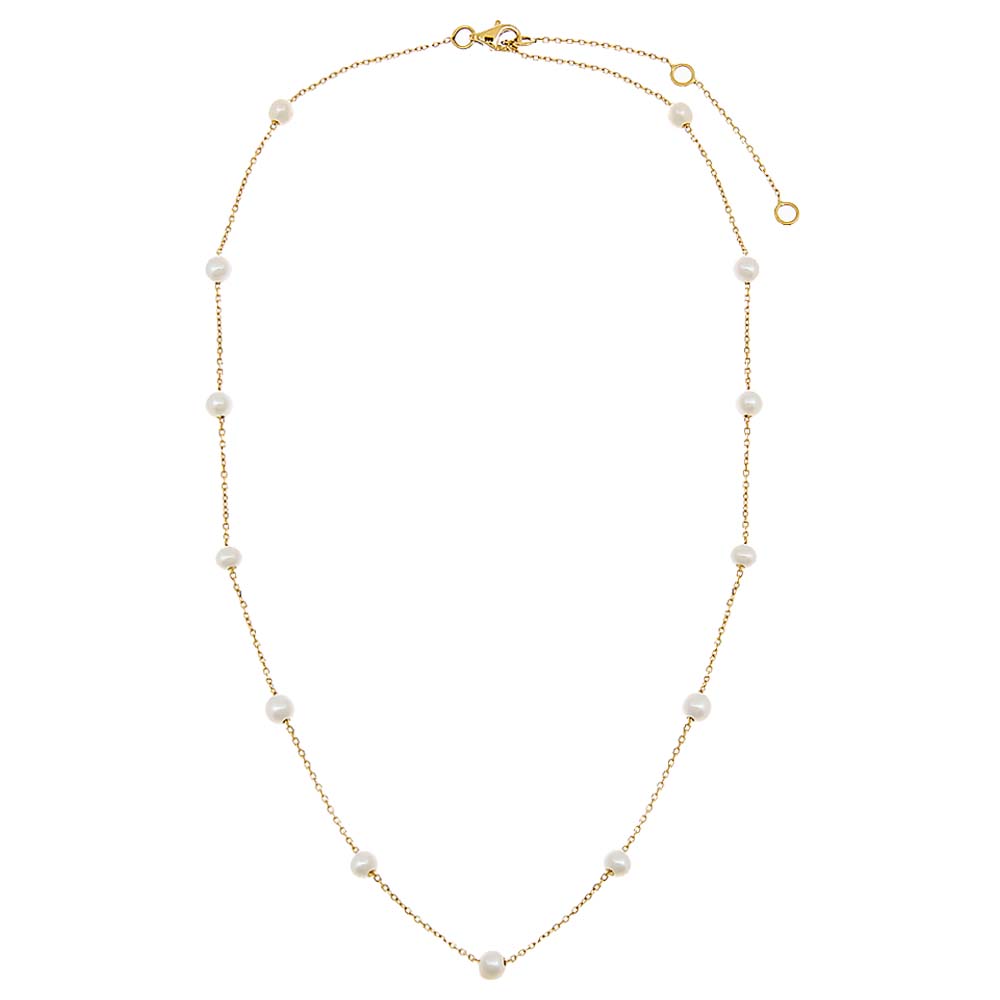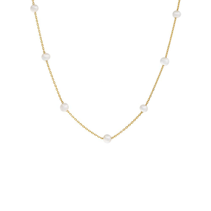 Add a touch of elegance to any look in Adina Eden's Multi Pearl Necklace, featuring an array of pearl charms set into a delicate 14K gold chain. Layer this gem up with a couple of 14K chokers and a tennis chain for a lovely look out on the town.