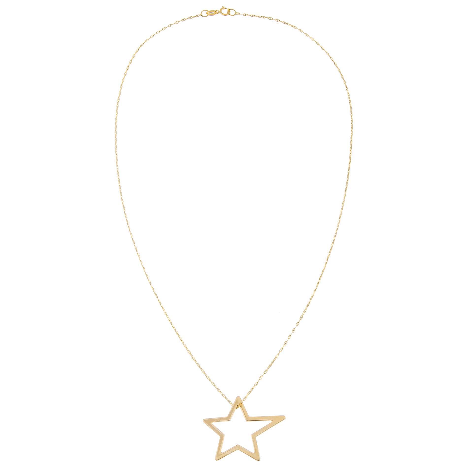Be a star of style in Adina Eden's Open Star Baby Gucci Necklace. This cute necklace flaunts an adorable open star frame pendant that hangs gracefully from a chic 14K gold Gucci chain. Add a couple of fine necklaces and don your favorite graphic tee when you wear this gem to have a fun night out with the girls.