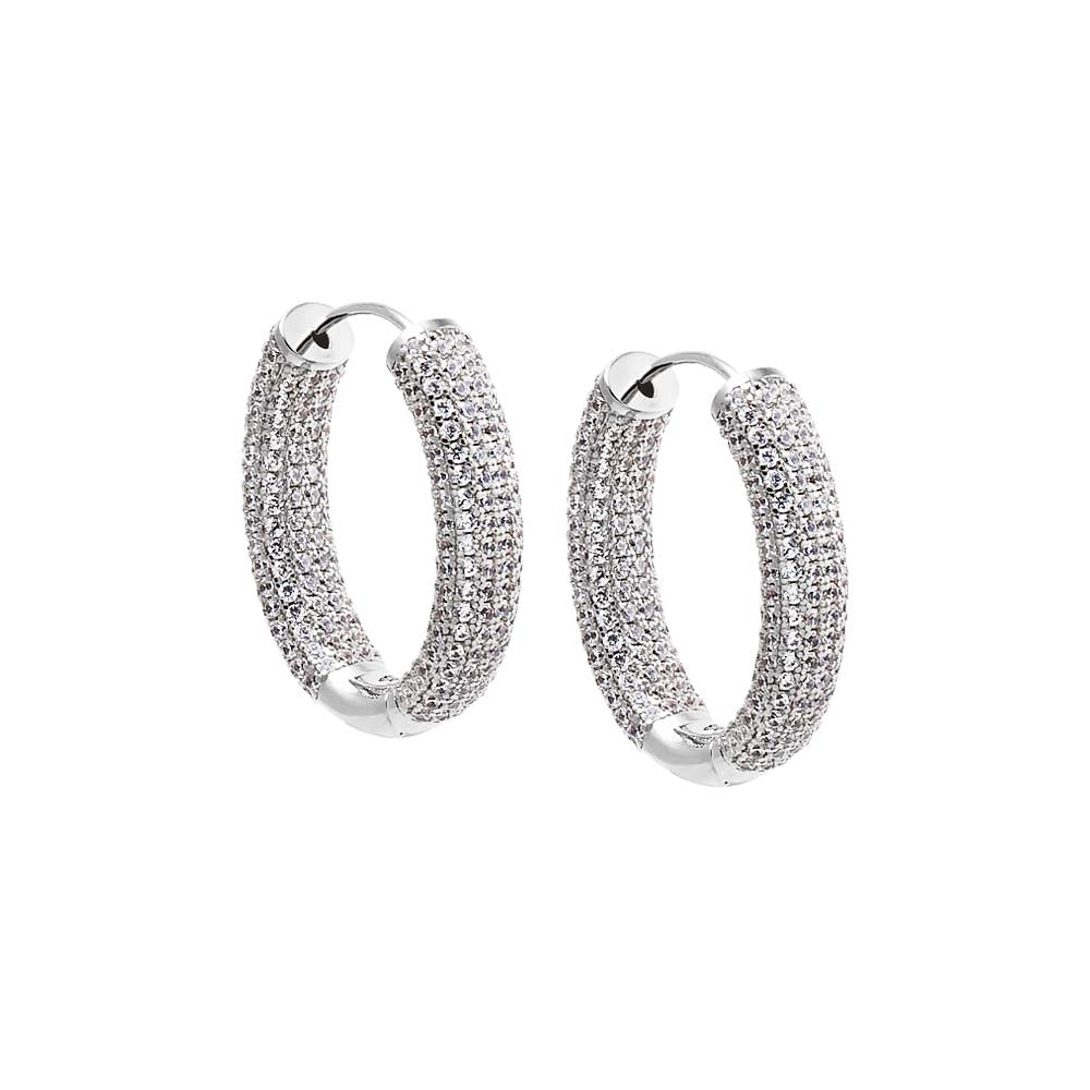 Oval CZ Pavé Wide Hoop Earring