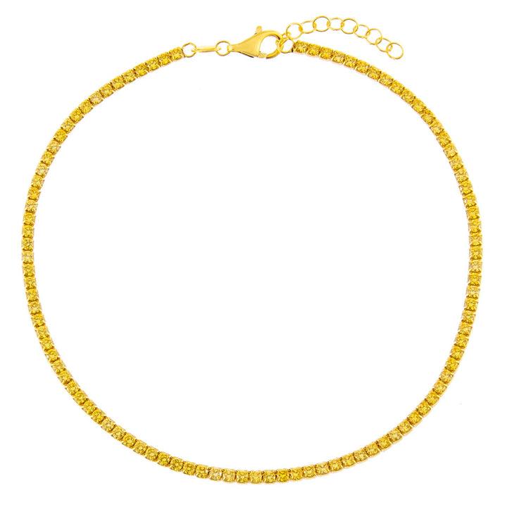 Flaunt the power of pastels in Adina Eden's Pastel Colored Thin Tennis Anklet, featuring an array of yellow, aqua blue, lime green, or lilac CZ stone set into a classic tennis chain. This beauty adds a delicate touch of color to your stack instantly. It's a cute statement piece that's understated but eye-catching.