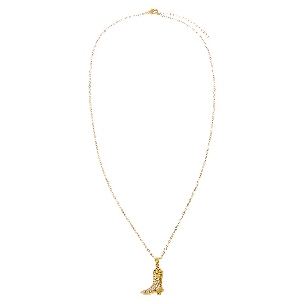 With a flawless silhouette, the Pave CZ Cowboy Boot Pendant Necklace by Adina Eden is the Necklace you'll never want to take off. With thoughtful craftsmanship and bold hues, this gold pendant necklace for women is offered in Gold. Every day is different—this piece lets you show up feeling confident and completely put together. Blend this gold plated pendant necklace layered with finds in the Choker Necklaces collection to keep things polished, modern, and fun. All the right elements come together in this one finishing piece.