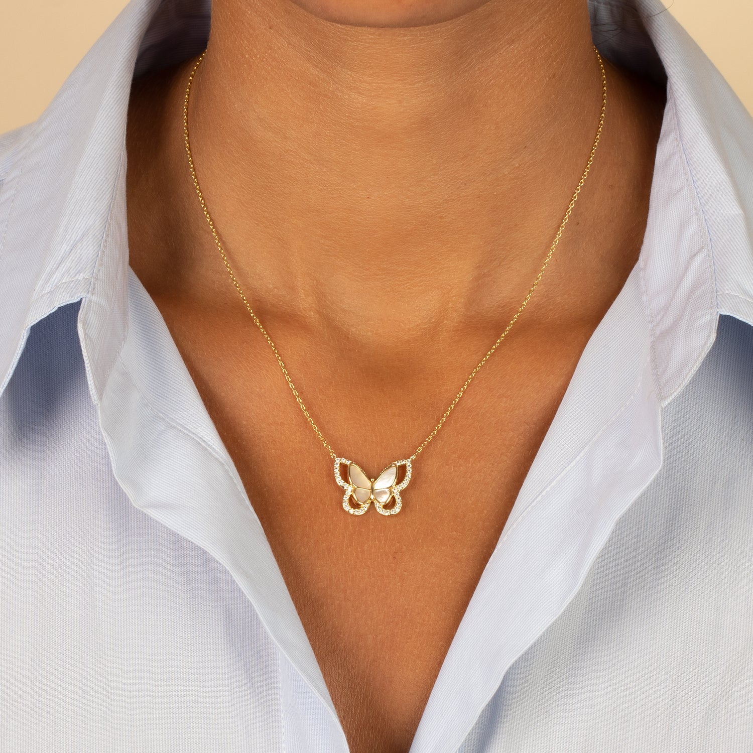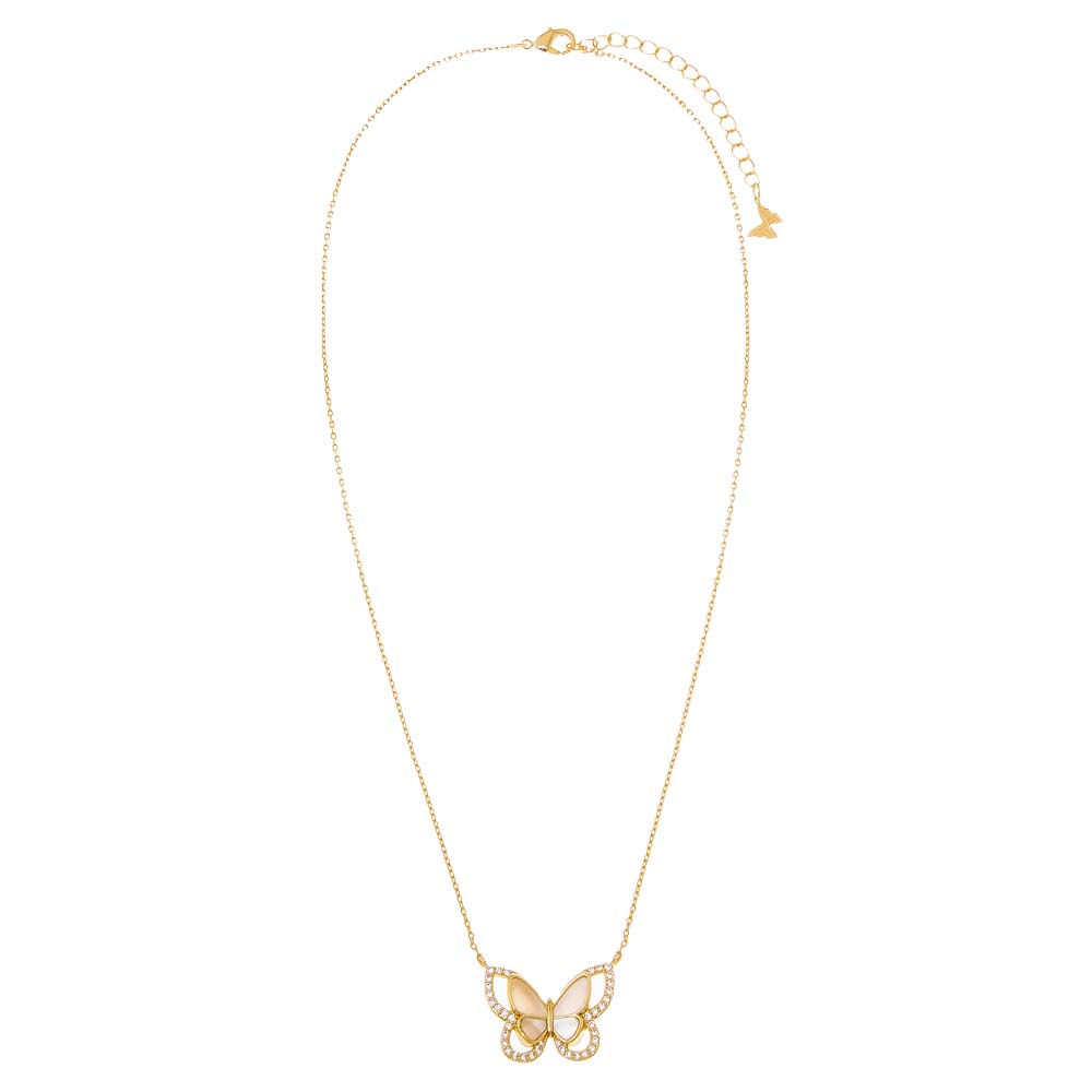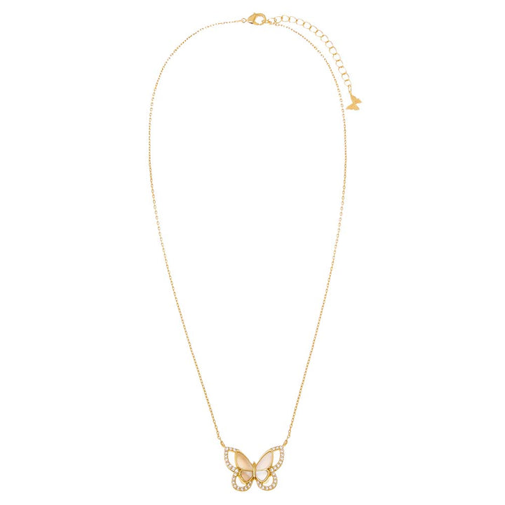 Pave Mother Of Pearl Butterfly Cutout Pendant Necklace
