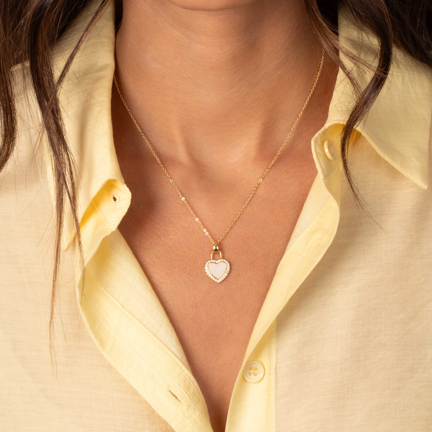 Add a dash of color and charm with the Pave Outline Heart Lock Charm Necklace by Adina Eden, a standout Necklace made to impress. Add instant glow with this charm necklace for women, styled in White to complete your stack. Whether you’re grabbing coffee or dressing up for dinner, this piece adds the right touch of style to any outfit without weighing it down. Complement this gold plated charm necklace with accents from our Lariat Necklaces collection to keep things polished, modern, and fun. Subtle, stylish, and always the right choice.