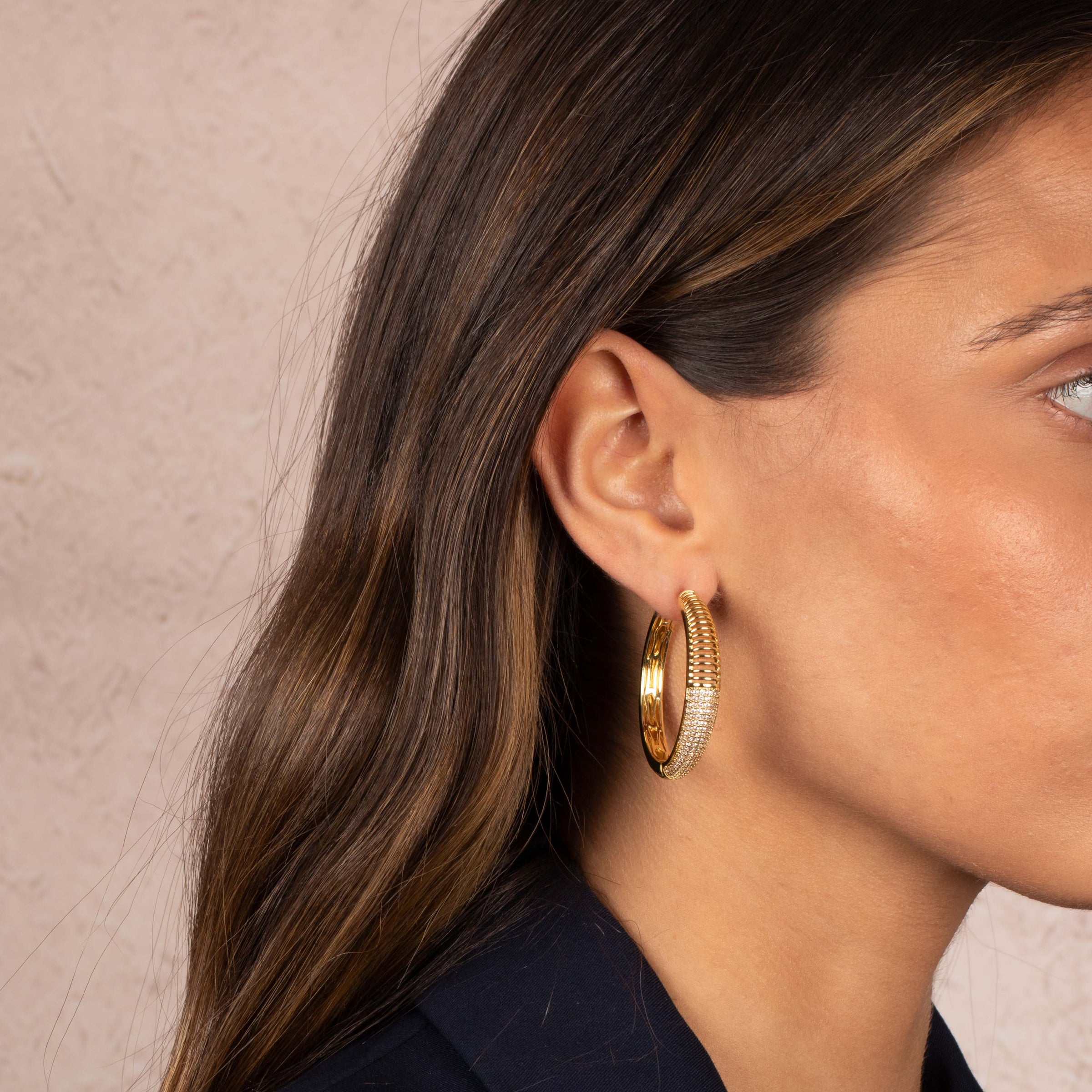 Pave X Ridged Hoop Earring