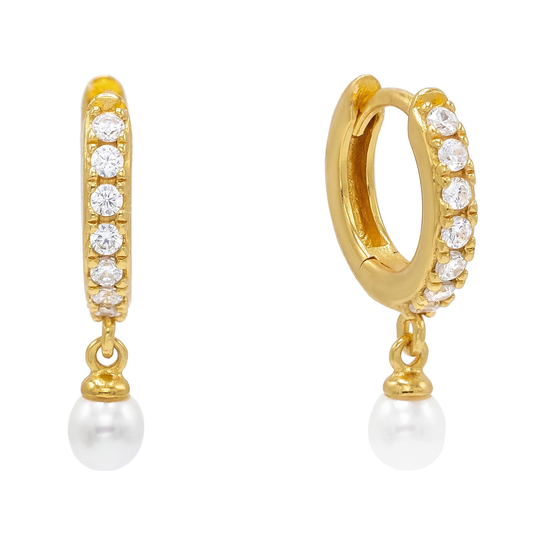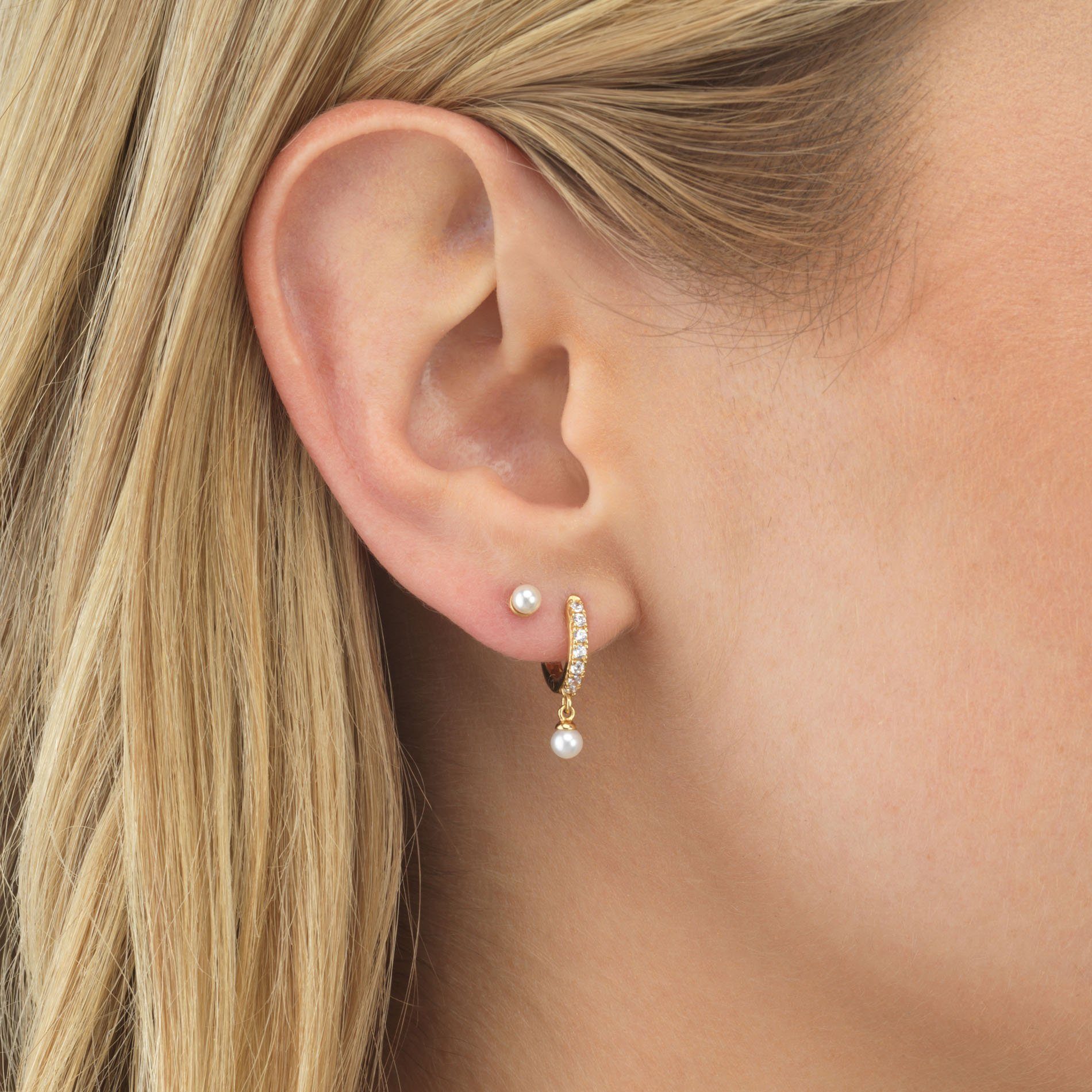 Make a shiny statement in the Adina Eden's huggie earring, designed with mini hoops set with pavé stones and a dangling faux pearl. An Adina Eden's exclusive, these pretty and classic pearl earrings will add an elegant vibe to your everyday style.