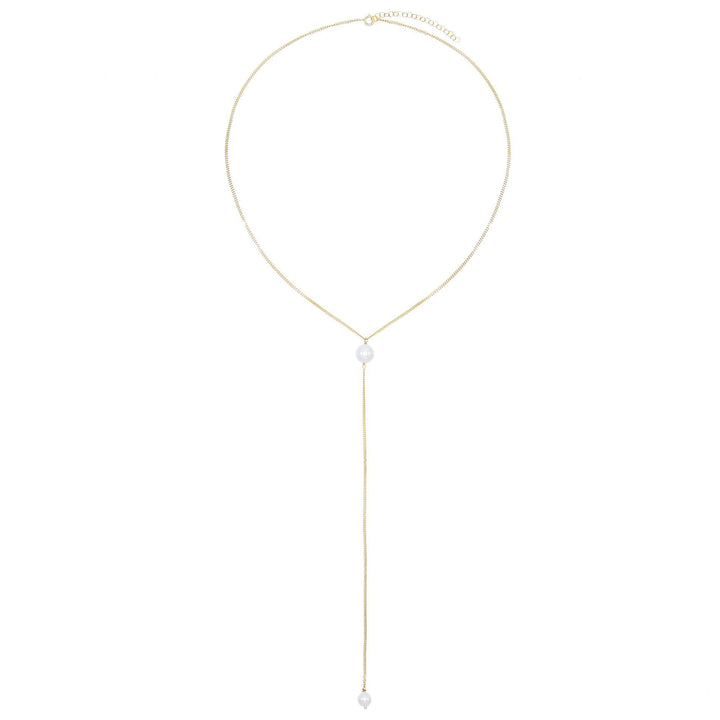 Adorn yourself with Adina Eden's pearl lariat necklace, crafted on a delicate gold vermeil chain with two shiny faux pearls. Style it with a simple maxi dress for an elegant effect.