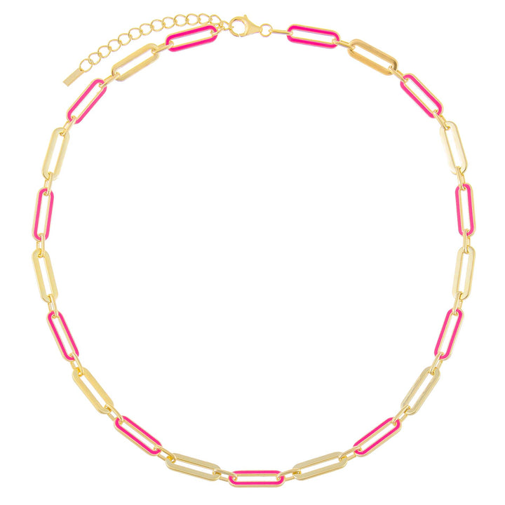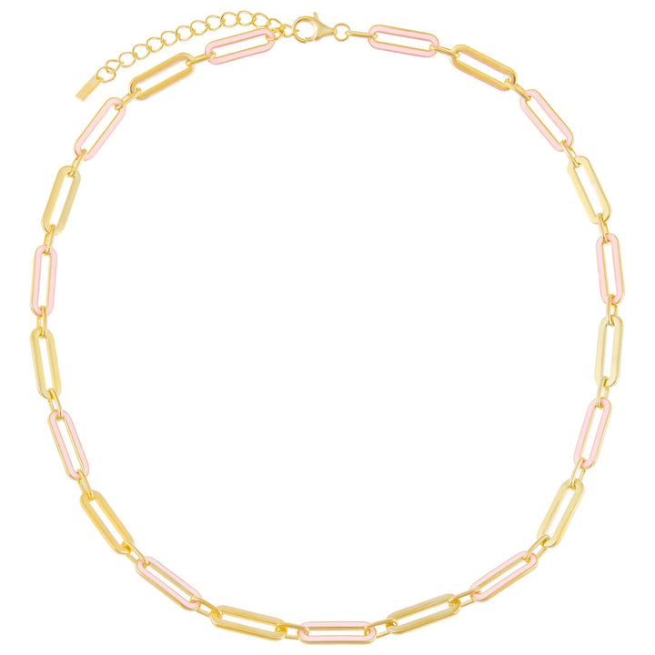 Pink Enamel Oval Link Necklace