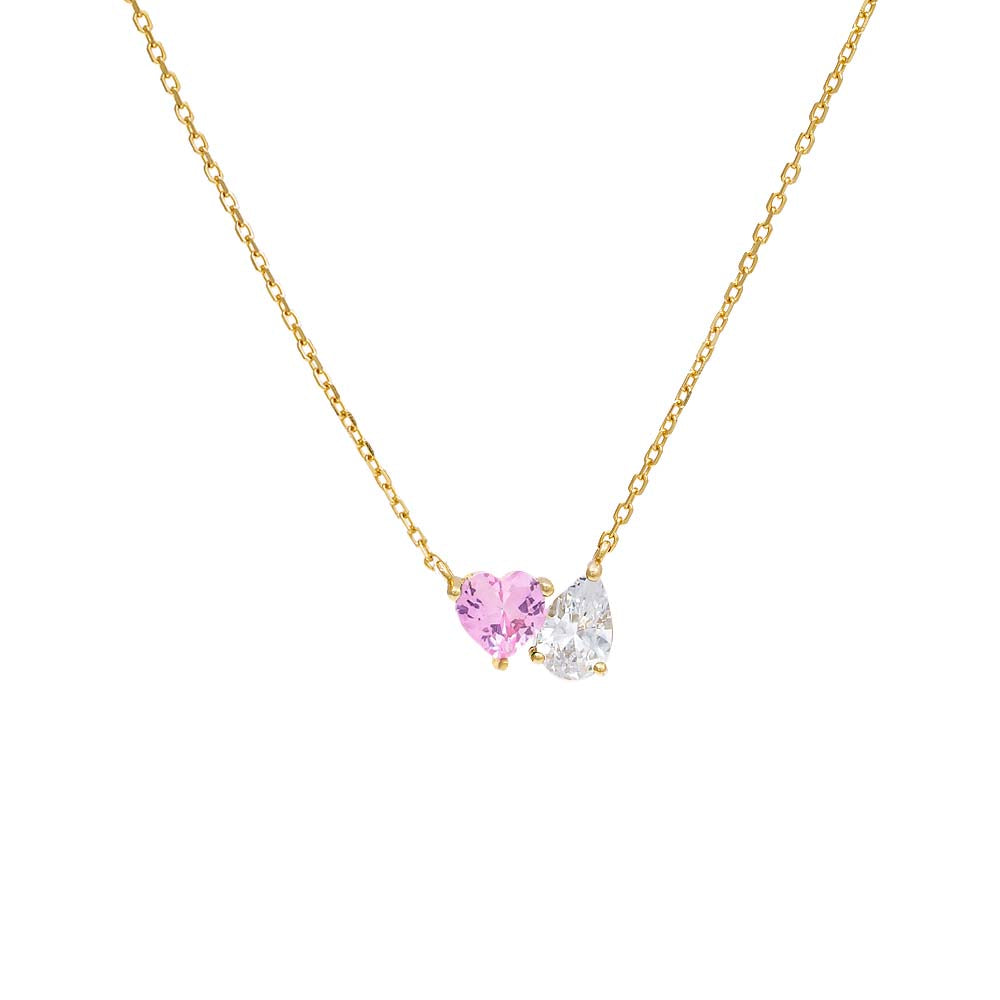 Brighten up your look in a sweet second with Adina Eden's Heart X Pearl CZ Necklace, featuring an elegant clear heart CZ and colored heart CZ pendant duo that dangles gracefully from a dainty chain. Create a cute, everyday layered style when you wear this gem with another pendant necklace and choker. Flirty and fun for any occasion!