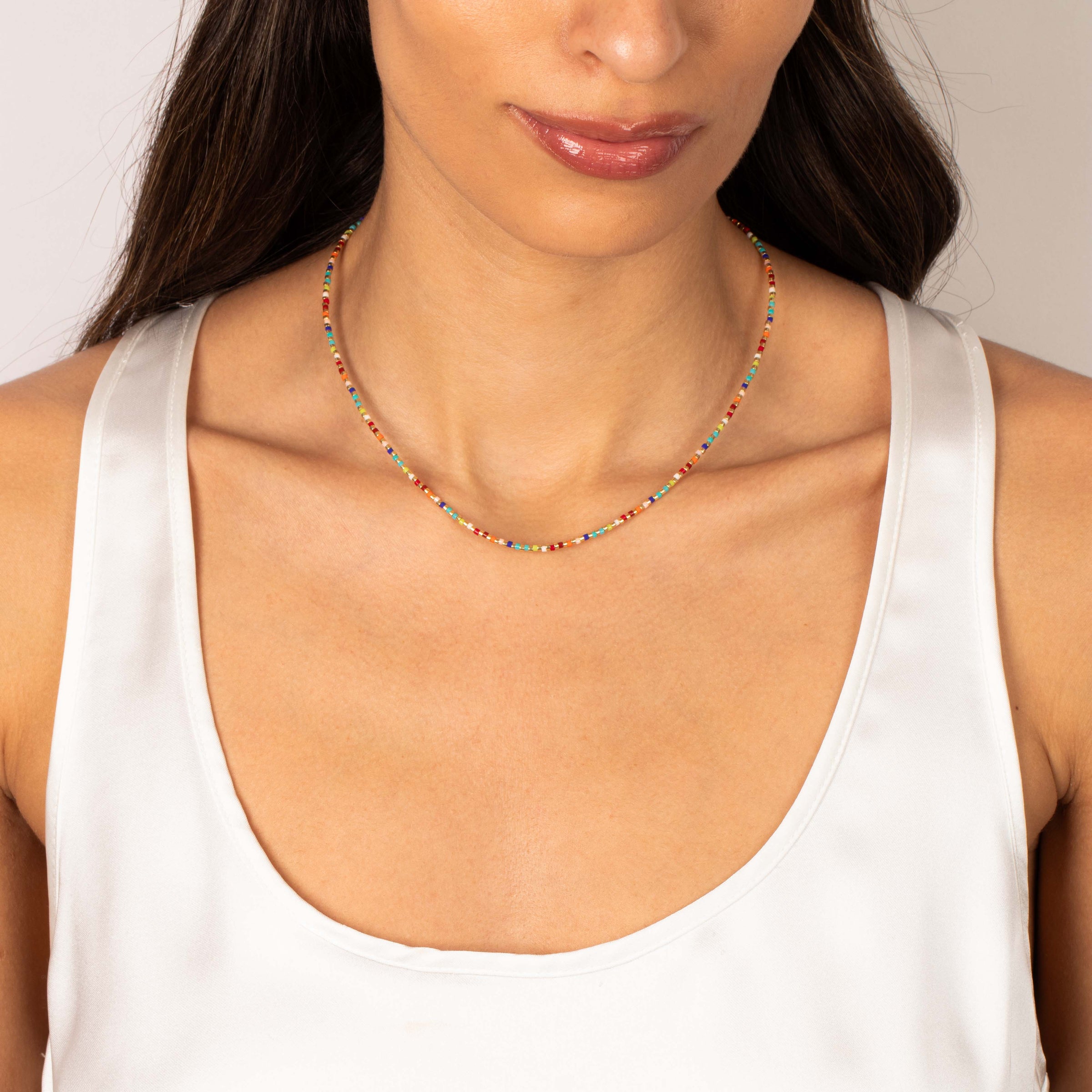 Light up your style routine with the Rainbow & Gold Thin Beaded Necklace by Adina Eden, a brilliant Necklace for all-day wear. This eye-catching cute necklace for women is thoughtfully crafted with detail and dimension, available in Multi-Color. For days that start early and end late, this piece adapts to your pace and your style—one detail, unlimited versatility. Pair this gold plated necklace with pieces from our Charms & Pendants collection for an expressive, stackable moment. It's easy to wear, easy to love, and even easier to style daily.