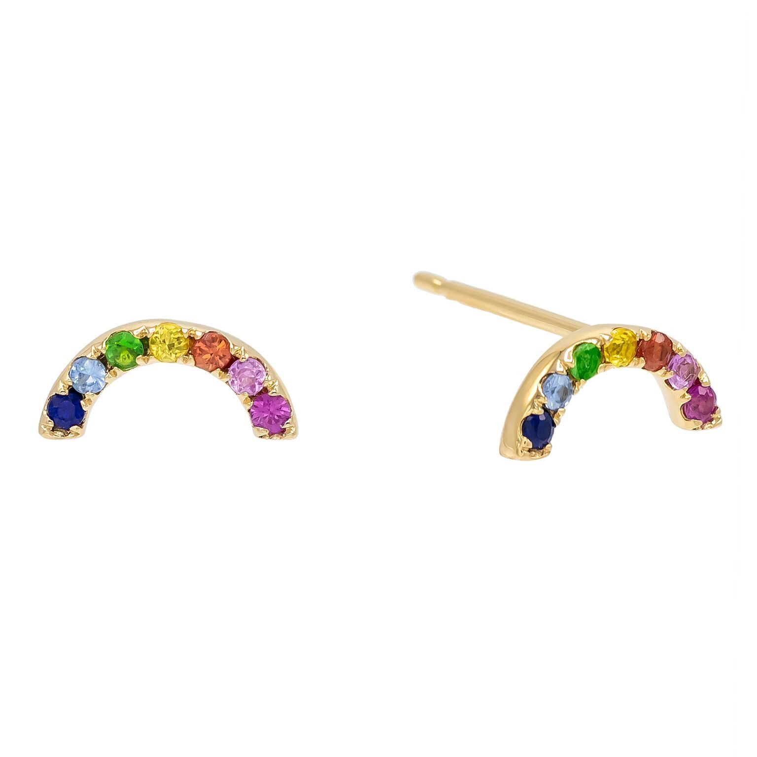 Make a charming statement in Adina Eden's rainbow stud earrings, made with 14K gold. They feature multi-colored stones that will allow you to sparkle. These adorable, yet luxe earrings make a great gift for your best friend.