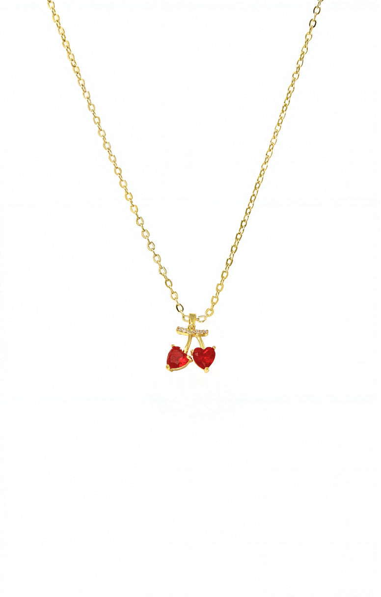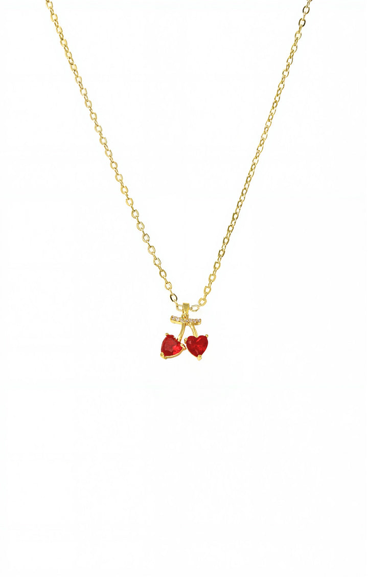 Red Cherry Hearts Charm Necklace