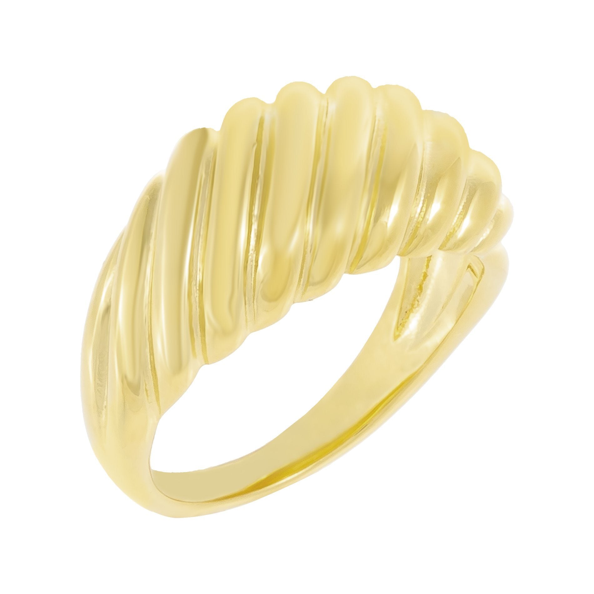 Go for riveting look with Adina Eden's Solid Ridged Dome Ring, featuring an alluring dome-shaped design topped in ridge accents. Expertly crafted in glowing gold vermeil, this ring works marvelously well when paired with a series of dainty rings for an exquisite style.