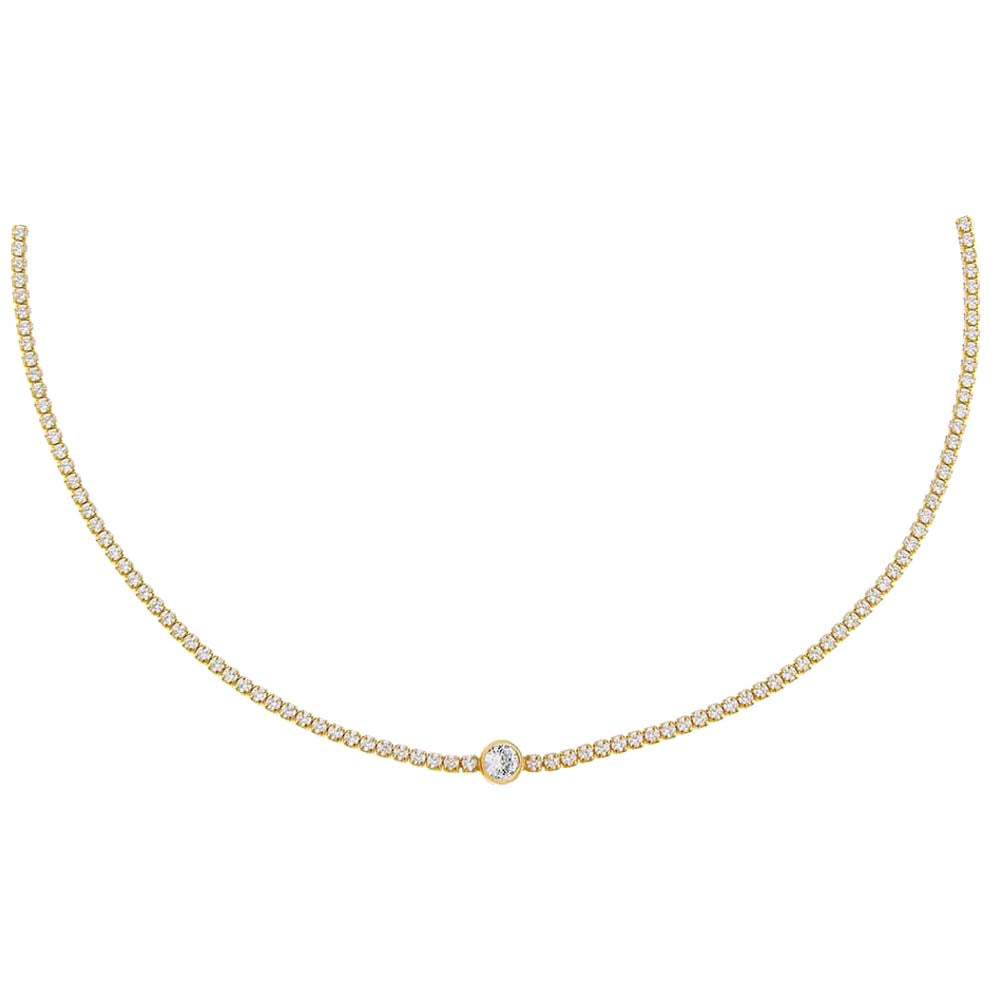 Give the classic tennis necklace a little extra sparkle in Adina Eden's Round Bezel Thin Tennis Choker, featuring a glittery round-cut CZ pendant set into a tennis chain. Rock this beauty solo. Or, really make it shine bright when you wear it with another tennis necklace and a couple of basic chains.
