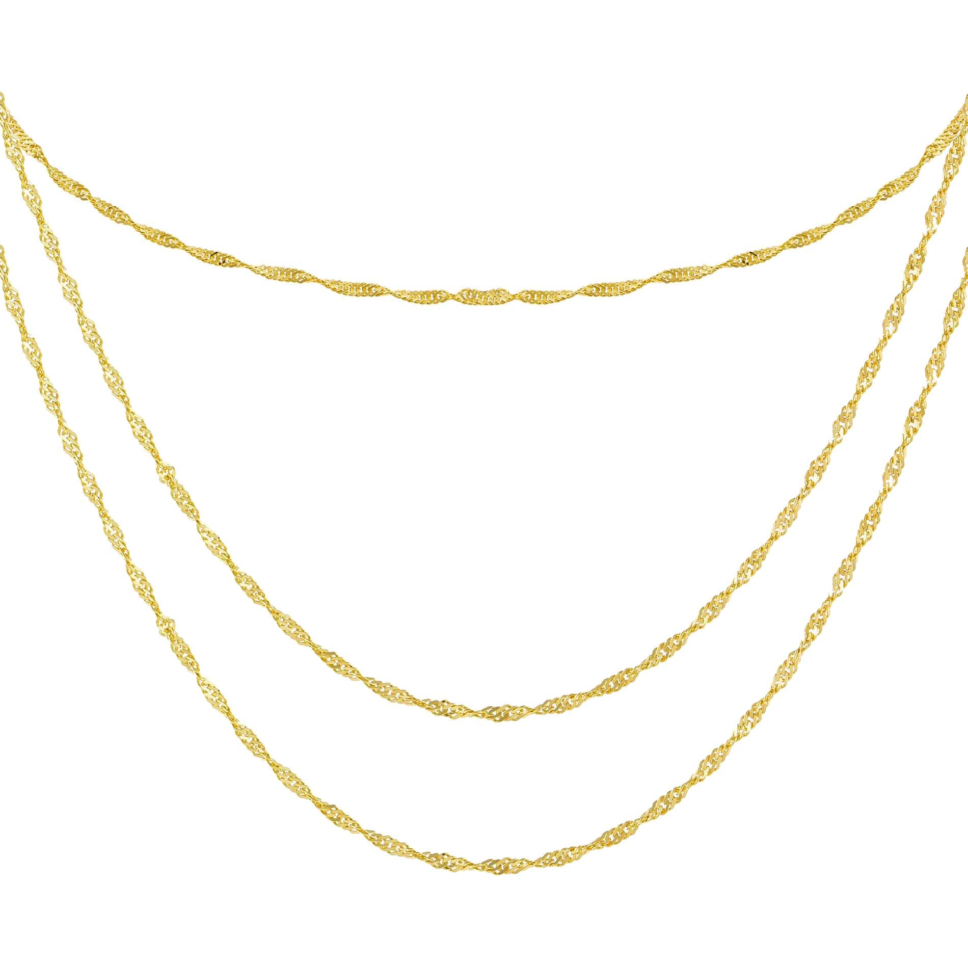 Go for a brilliant, layered look in Adina Eden's Singapore Chain Necklace Combo Set, featuring a stunning two-length Singapore chain necklace pair that's accompanied by a matching choker. All you need is a lariat to complete this look. So sophisticated!