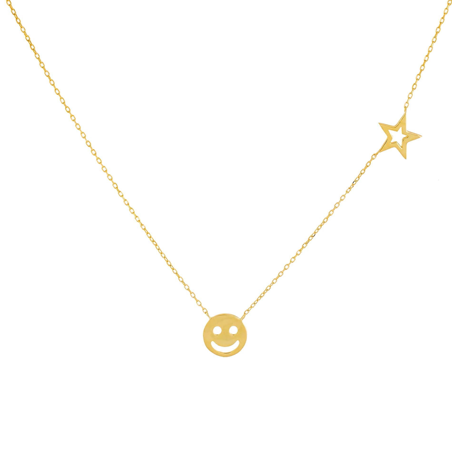 Create a truly cute look whenever you wear Adina Eden's Smiley Face X Star Necklace, featuring an asymmetrical chain design that flaunts an adorable smiley face and open star pendant duo. You can't help but smile when you wear this. It's fun and fashion in one piece. Pair it with a cute choker and a graphic tee for a playful vibe.