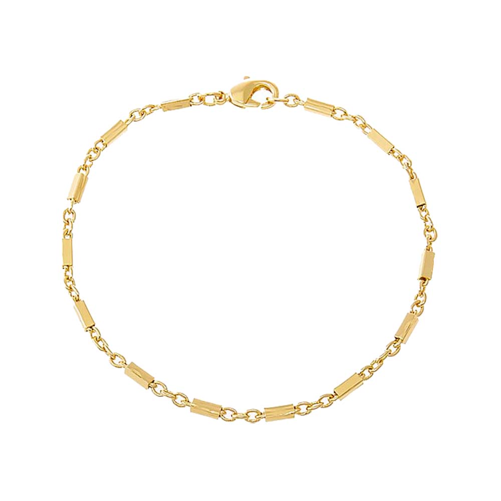 Elevate your ankle stack with Adina Eden’s solid cylinder chain anklet. Crafted from high-quality brass with a radiant 14K gold plating, this sleek and modern piece features a unique cylinder chain design for a minimalist yet eye-catching look. Designed with a comfortable 9-inch length, it’s perfect for everyday wear or layering with other anklets for a trendy, stacked style. A must-have for effortless elegance and versatility.