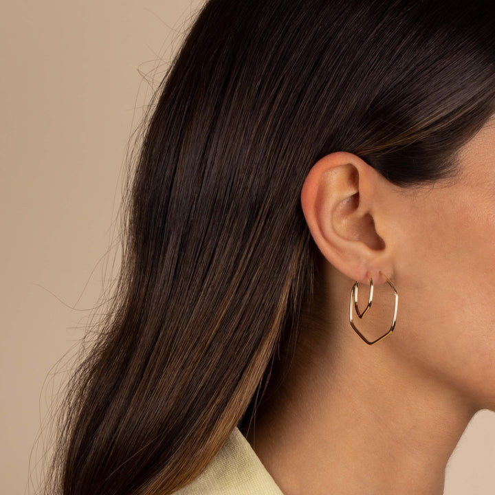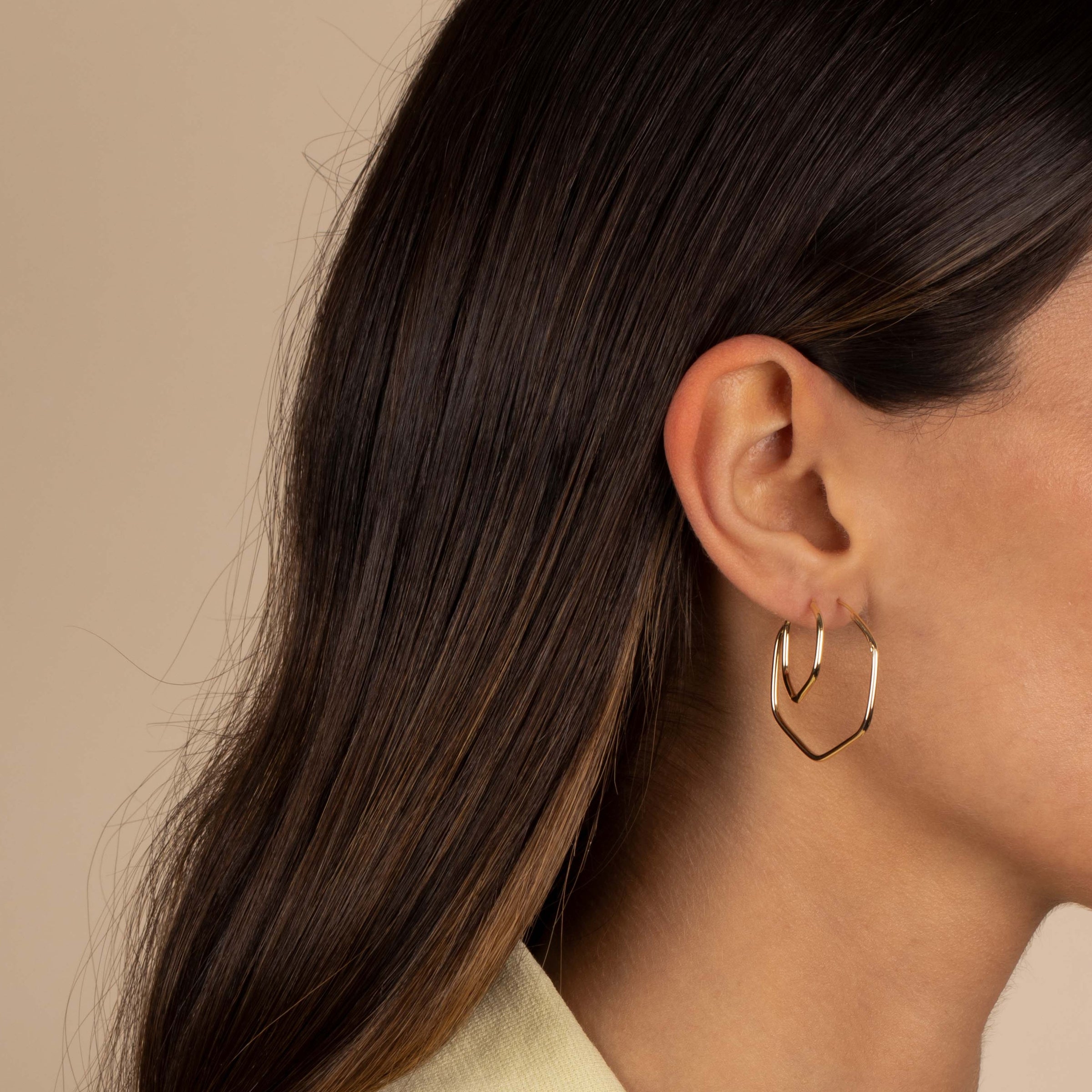 Introducing the Solid Endless Octagon Shape Hoop Earrings from Adina Eden, a unique and elegant addition to your jewelry collection. Crafted from luxurious 14K gold, these earrings feature a distinctive octagon shape with a delicate 1.5 mm thickness, offering a refined and modern look. Available in two sizes, 16 mm and 26 mm, these endless hoop earrings are designed to provide versatility and style options to suit any occasion. Sold as a pair, they are super lightweight, ensuring comfortable wear throughout the day. Perfect for both everyday wear and special events, the Solid Endless Octagon Shape Hoop Earrings are a chic and timeless accessory that complements any outfit with their understated elegance and contemporary appeal. Elevate your style with these exquisite 14K gold hoop earrings and enjoy a sophisticated addition to your jewelry collection.