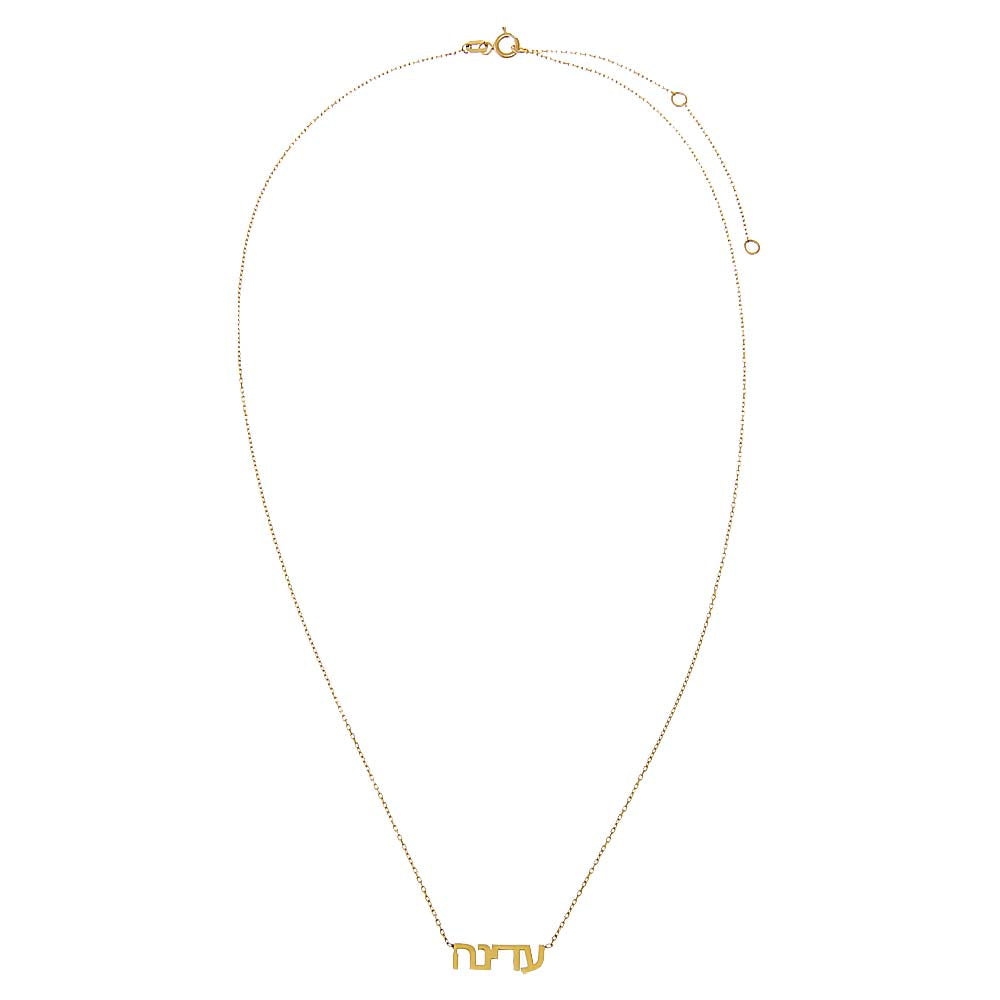 Enhance your jewelry collection with our elegant Solid Hebrew Nameplate Necklace, available in luxurious 14K Gold, 14K White Gold, and 14K Rose Gold. This beautifully crafted necklace features capitalized Hebrew letters, allowing you to personalize it with a name or meaningful word, ranging from 2 to 6 letters. The necklace comes with a 15-inch chain and includes two 1-inch extenders, ensuring a perfect and adjustable fit for any occasion. Ideal as a thoughtful gift for special occasions or a meaningful addition to your own collection, this necklace combines timeless beauty with cultural significance. Discover the perfect blend of sophistication and tradition with our Solid Hebrew Nameplate Necklace. Shop now to create a bespoke piece that reflects your unique style and personal heritage.
