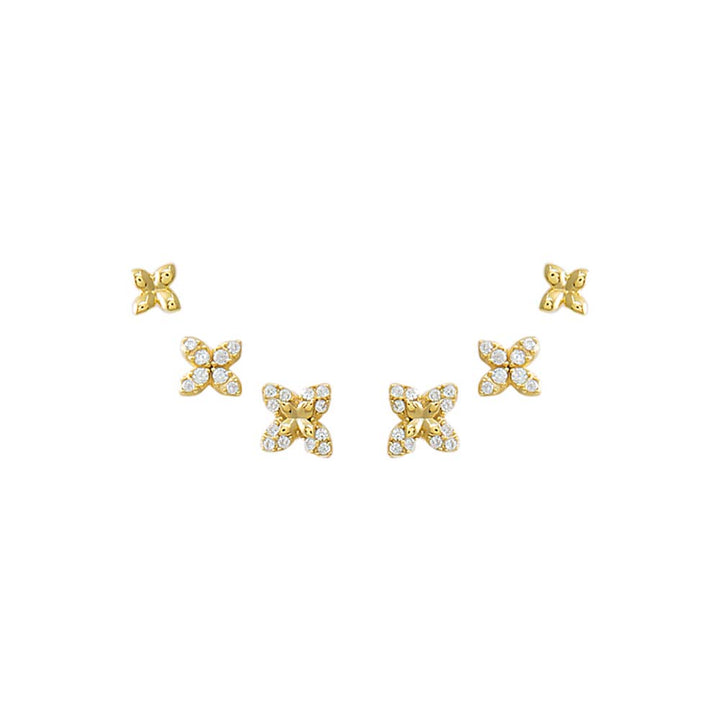 Solid/Pave Graduated Four Leaf Flower Stud Earring Combo Set