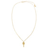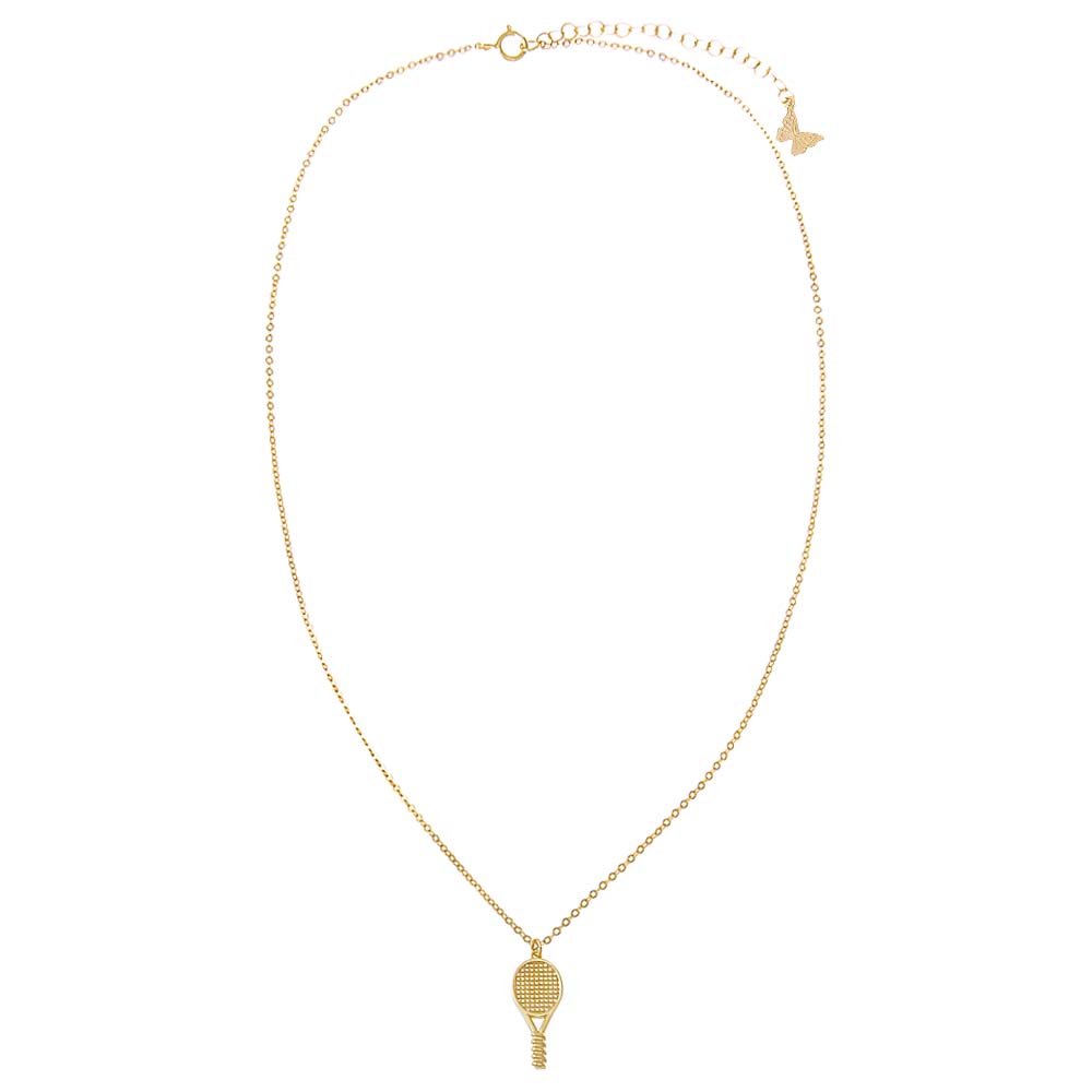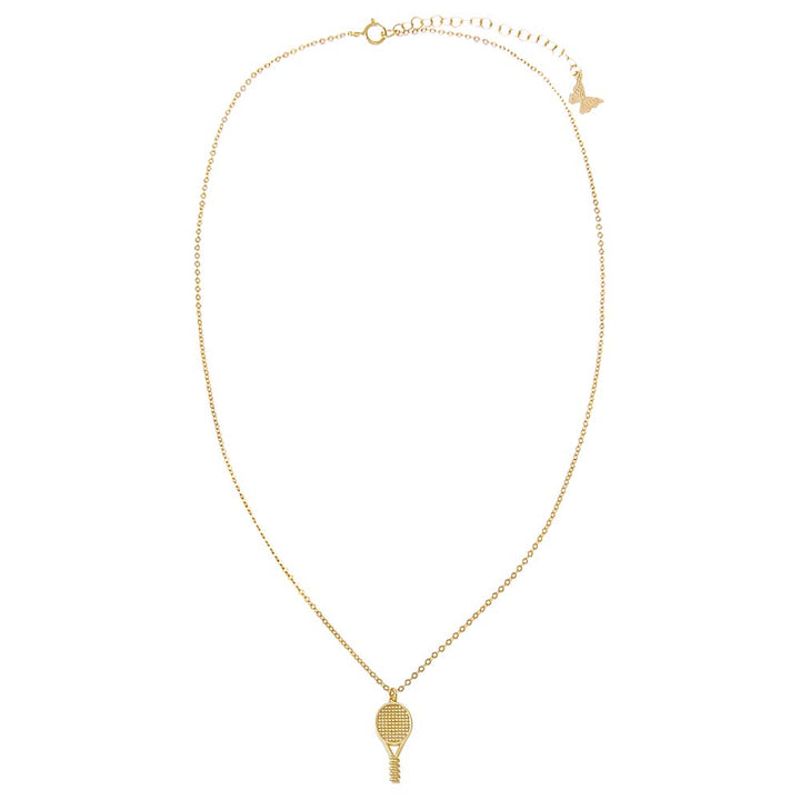 Adina Eden's Solid Tennis Racket Pendant Necklace is a stylish and sporty accessory, crafted from high-quality brass and plated in luxurious 14K gold. The necklace features a sleek 19mm tennis racket pendant, offering a refined yet playful design. With an adjustable length of 16" plus a 2" extender, this necklace is versatile for layering or wearing on its own as a statement piece. Perfect for tennis enthusiasts or anyone who enjoys unique jewelry, this necklace adds a fun yet sophisticated touch to any outfit.