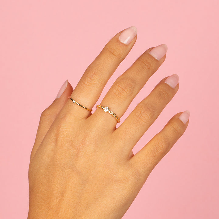 Sparkle from top to finger touch with Adina Eden's Solitaire CZ Chain Ring, featuring a solitaire CZ charm set into a delicate round link band. Smart, simple, and sophisticated, this gem stacks perfectly with your everyday jewels. Add a cocktail ring for the full, dazzling effect.