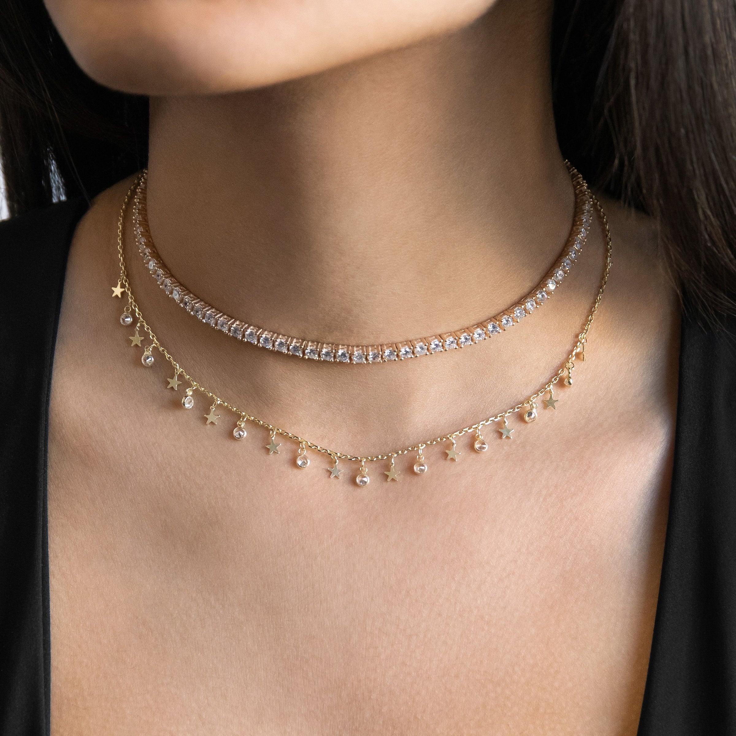 Beautify your neck with Adina Eden's charm choker, complete with delicate stars and chic bezel stones that dangle from a dainty chain. This pretty piece will add playful details to your everyday wardrobe.