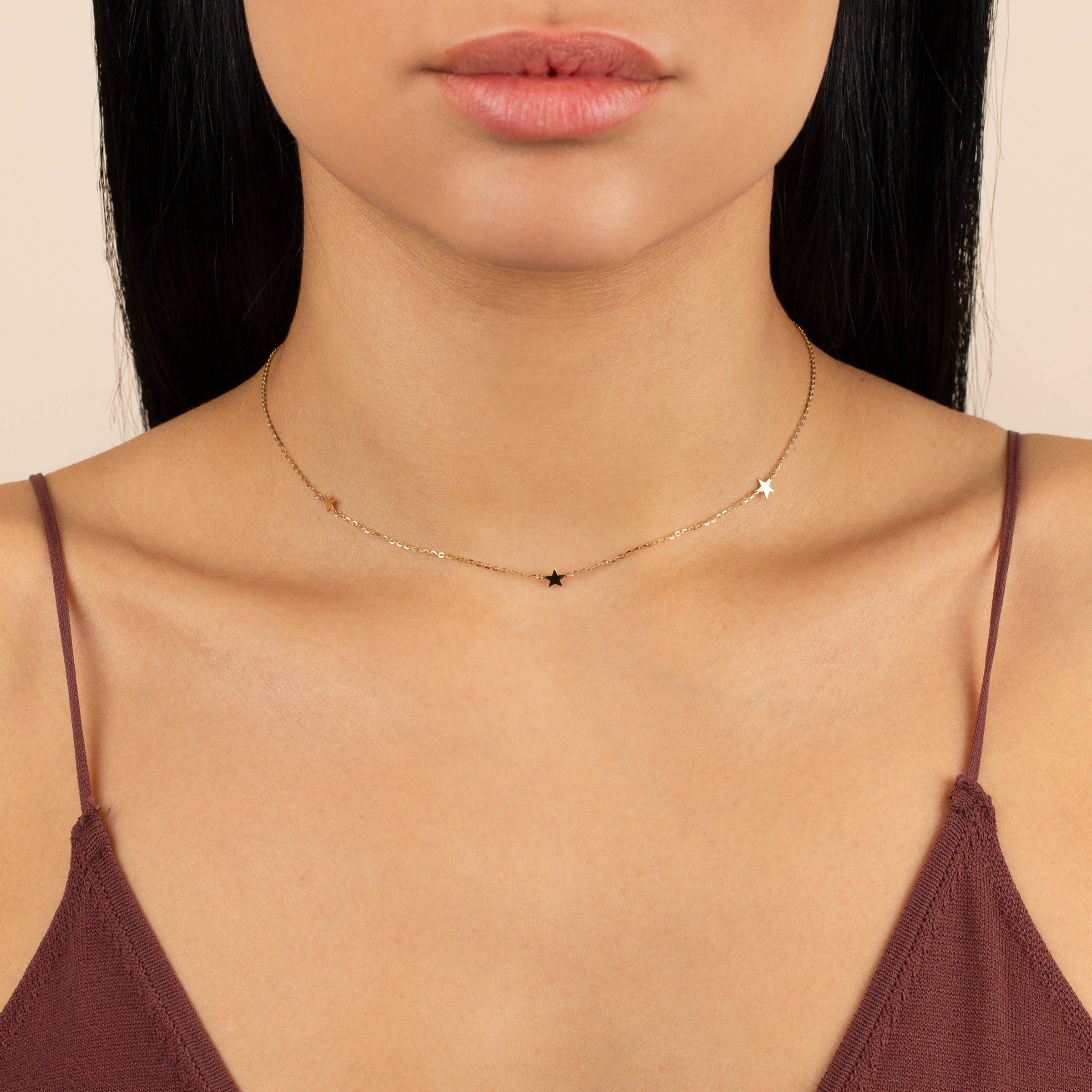 Adorn yourself with Adina Eden's star choker necklace, designed with three mini stars along a dainty chain. It's crafted from our high-quality 14K gold, which will last you forever. Shine like a star in this adorable choker.